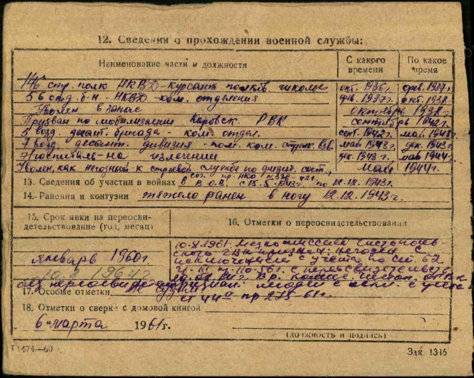 В мае 1944 г. уволен, как негодный к строевой службе по физ.состоянию здоровья.
