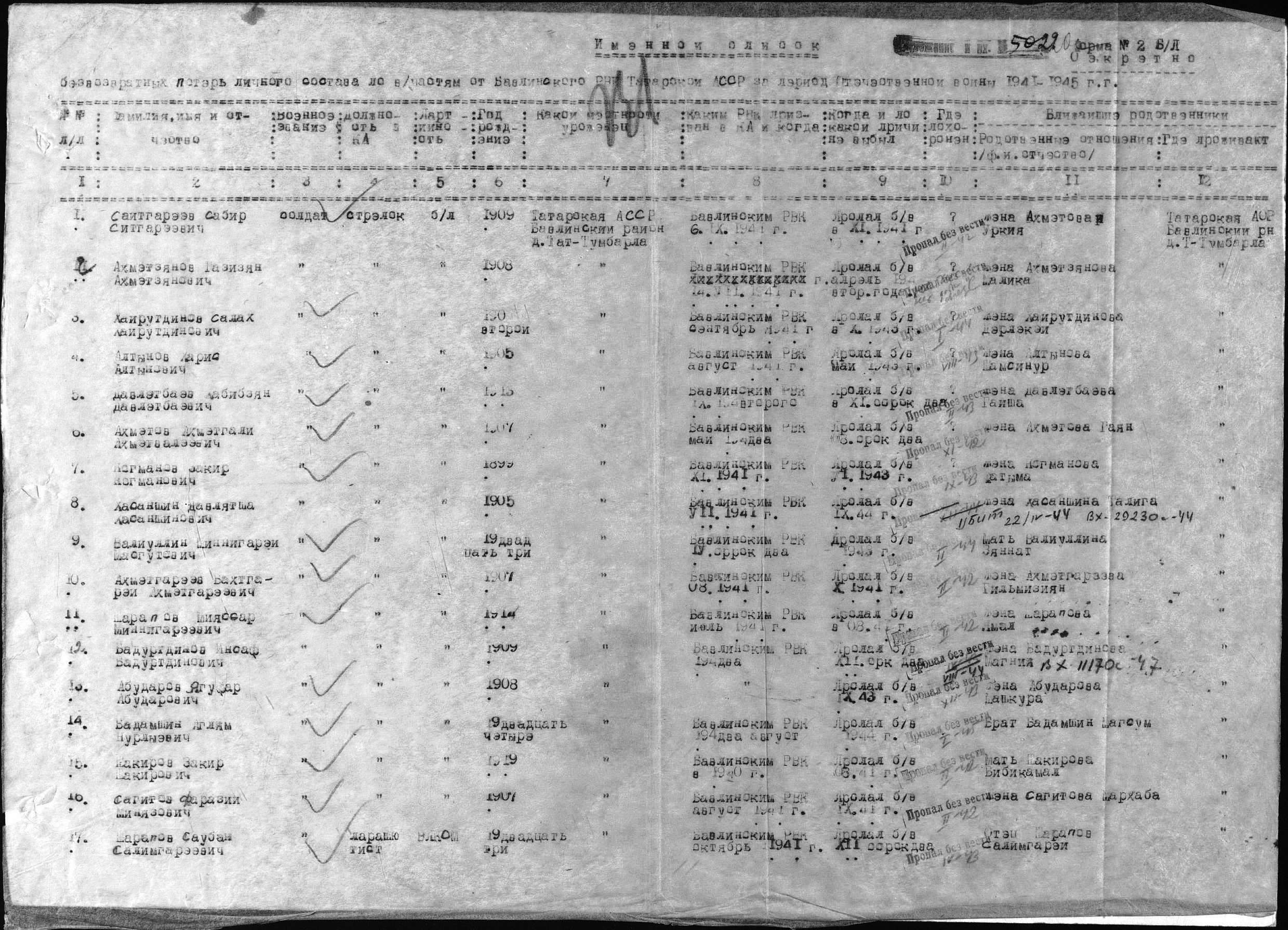 Родился в селе Ивановка в 1915 году. Призван на фронт Бавлинским РВК в ноябре 1941 года. Пропал без вести в феврале 1942 года. Жена - Пупина Прасковья Михайловна.