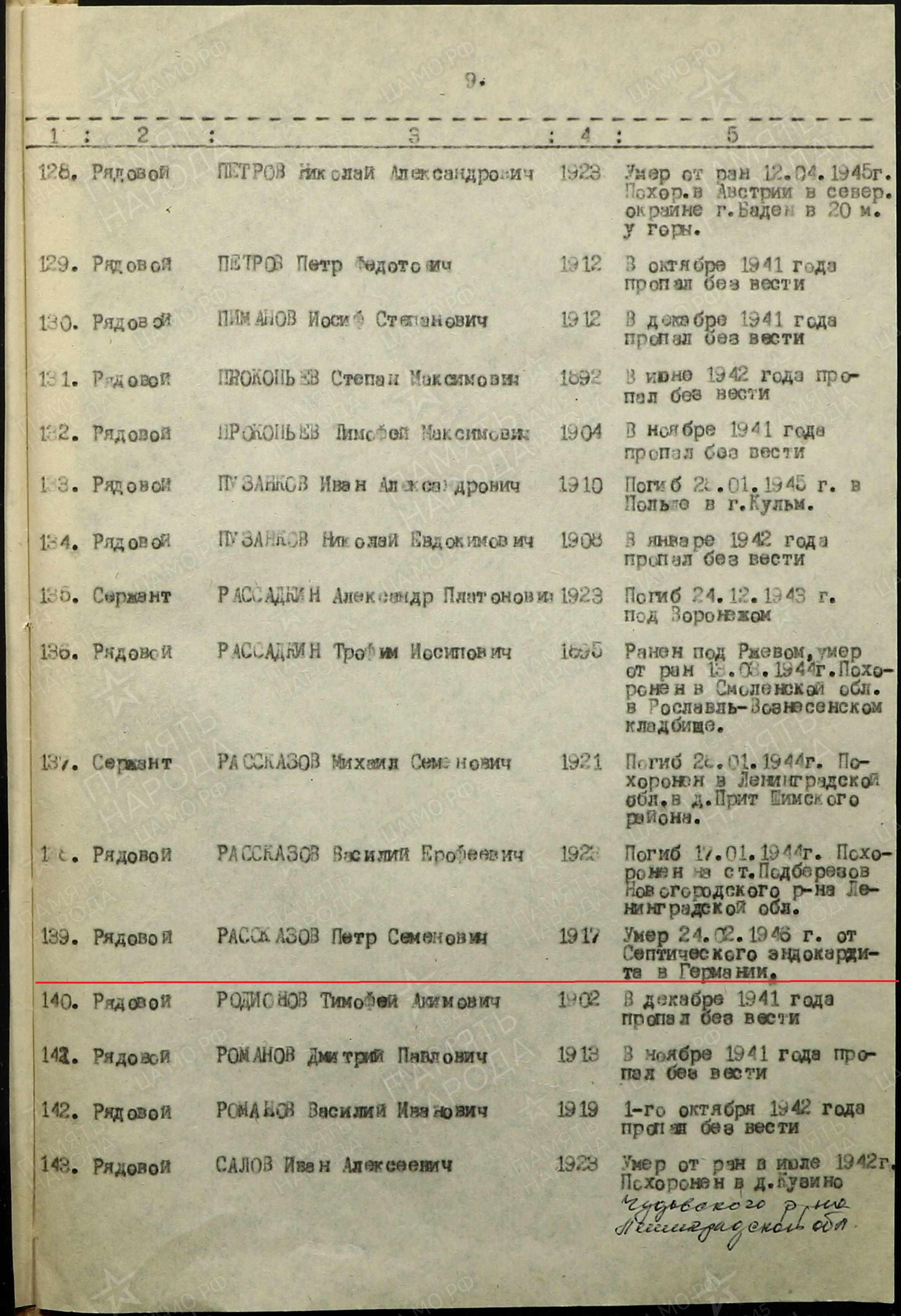 РАССКАЗОВ ПЕТР СЕМЕНОВИЧ