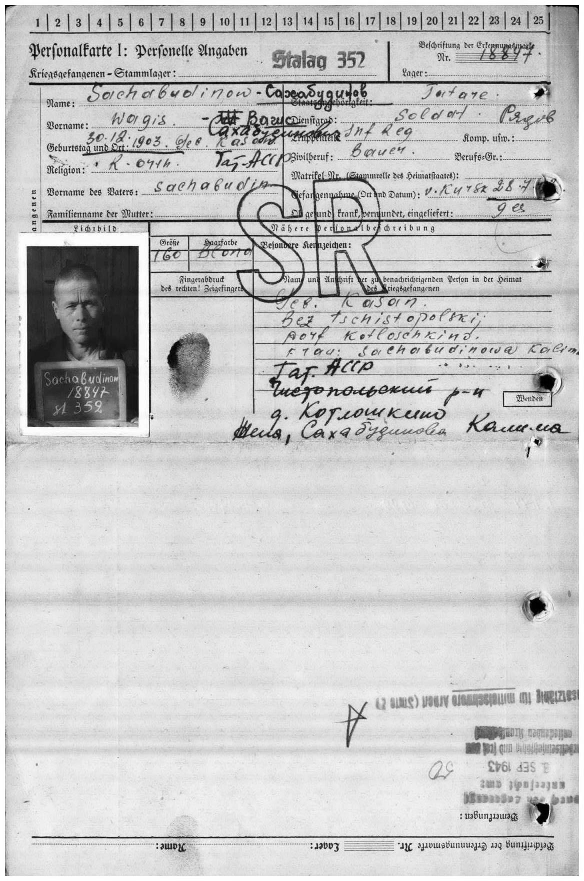 Родился 30 декабря 1903 г. в с. Кутлушкино Чистопольского уезда Казанской губернии. Рядовой. Пленен 28 июля 1942 года под Курском. Содержался в шталаге 352 Хаммельбург (Германия). Лагерный номер 18847. Освобожден из плена.