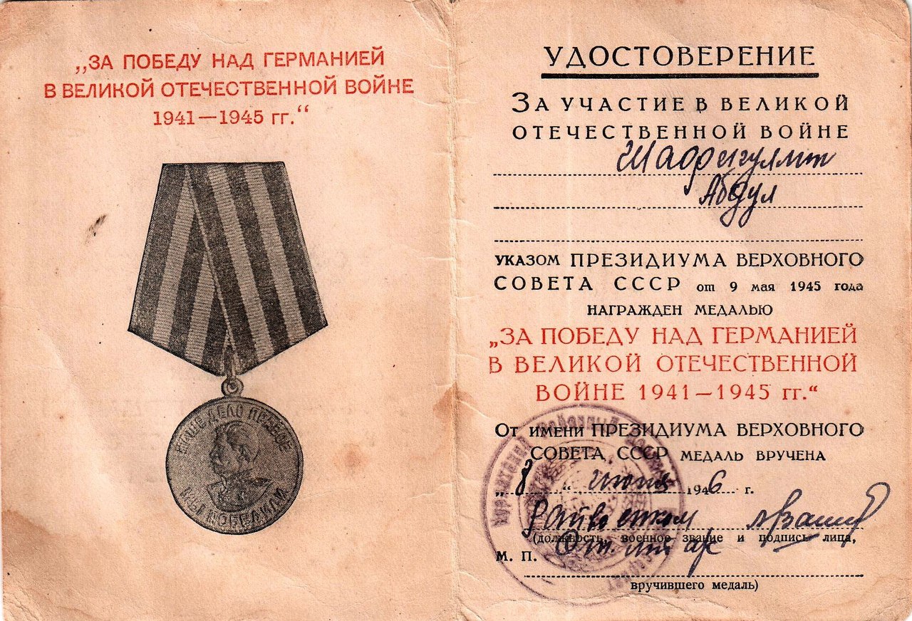 «За победу над Германией в ВОВ 1941-1945г.г.