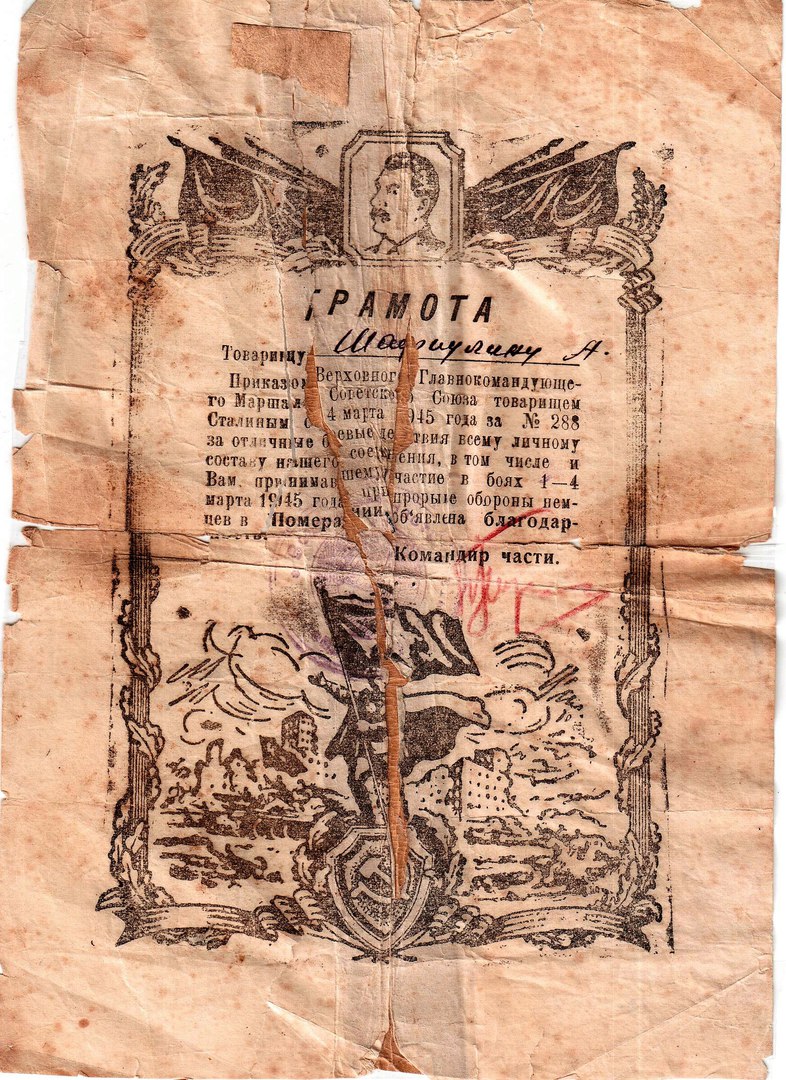 Участвовал в боях с января по май 1945г. в 594 стрелковом полку.