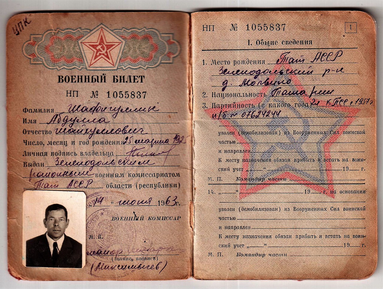 Место рождения: Татарская АССР, Зеленодольский район, д.Молвино.