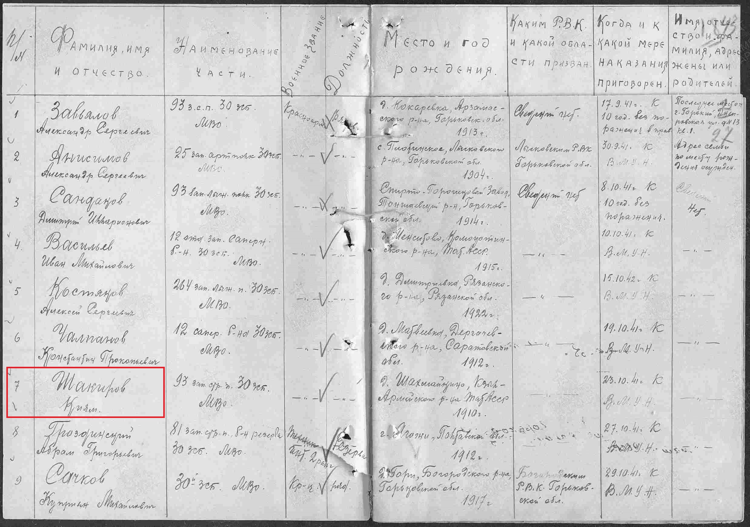 ШАКИРОВ КИЯМ родился в 1910 году в с.Шахмайкино Казанской губернии Чистопольского уезда Каргалинской волости (ныне с.Шахмайкино Новошешминского района РТ). Мобилизован Гаврило-Посадским РВК,кр-ц,93 зсп,30 зсбр МВО. Причина смерти: Расстрелян 10.43.г. Область выбытия: ВМН.