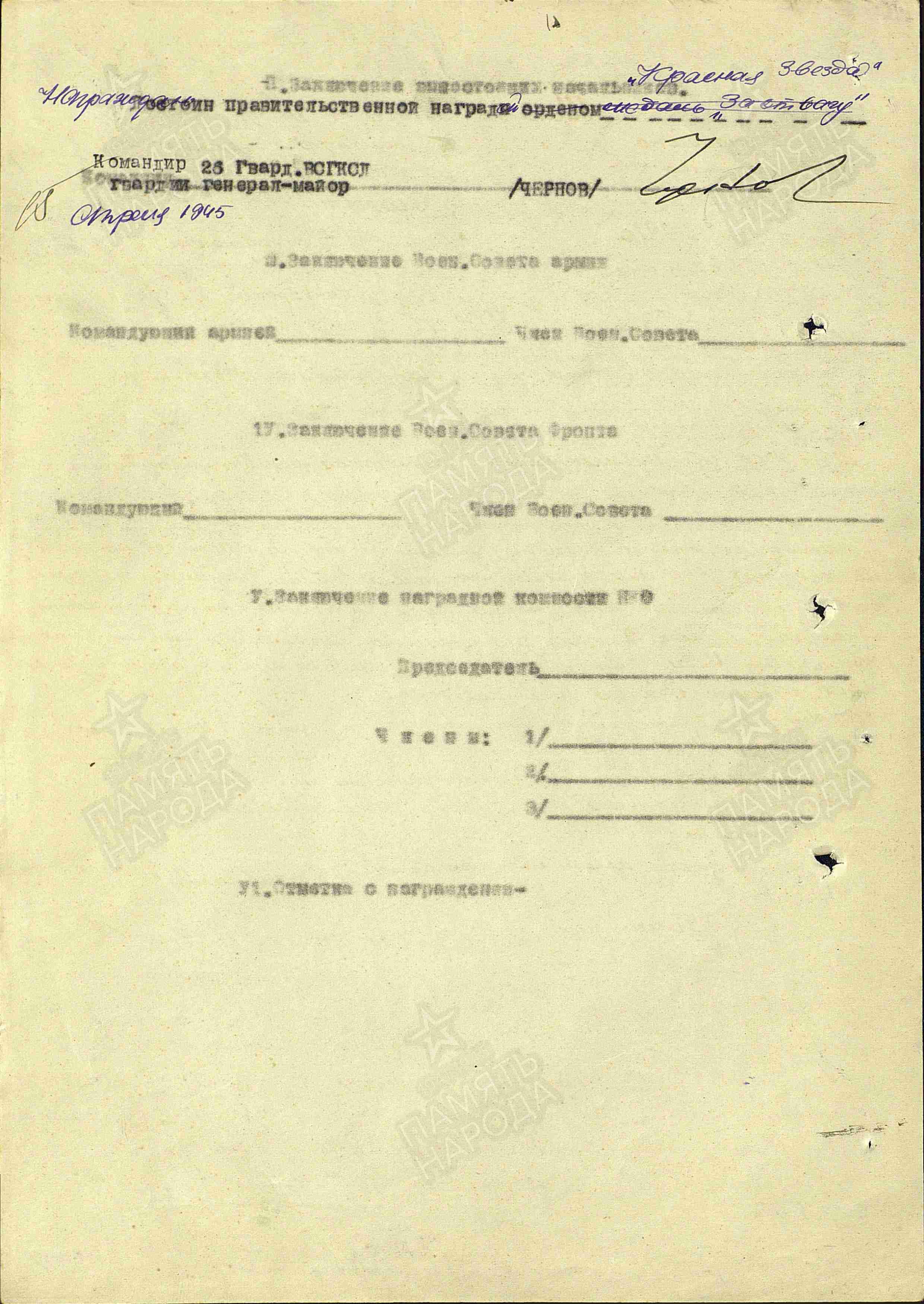 Приказом Верховного Главнокомандующего Маршала Советского Союза товарища СТАЛИНА от 9 апреля 1945 года № 333 за разгром кенигсбергской группы немецких войск и овладение городом и крепостью КЕНИНГСБЕРГ была ОБЪЯВЛЕНА БЛАГОДАРНОСТЬ.