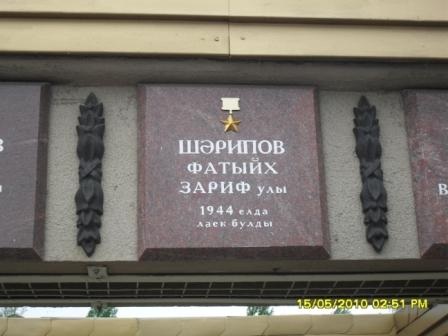 Шарипов Фатых Зарипович - командир роты 398-го танкового батальона 183-й танковой бригады 40-й армии Воронежского фронта, старший лейтенант. Родился 20 января 1921 года в селе Байряки-Тамак в крестьянской семье. Татарин. Окончил 3 курса Бугульминского педагогического училища, работал учителем математики. В рядах Красной Армии с 1940 года. Окончил Казанское танковое училище в 1942 году. Член КПСС с 1942 года. Участник Великой Отечественной войны с мая 1942 года. Участвовал в Курской битве. В ночь на 23 сентября 1943 года Ф. З. Шарипов с вверенной ему моторизированной ротой переправился через Днепр в районе села Балык и с боем заняли плацдарм. Ожидая подхода основных сил в течение трех суток, рота под командованием Ф. З. Шарипова мужественно отражала контратаки немецких войск, неся значительные потери в технике и личном составе. В ходе боя рота под командованием Ф. З. Шарипова овладела и удержала до прихода основных сил, важной высотой. Указом Президиума Верховного Совета СССР от 10 января 1944 за образцовое выполнение боевых заданий командования на фронте борьбы с немецкими захватчиками и проявленные при этом отвагу и геройство старшему лейтенанту Шарипову Фатыху Зариповичу присвоено звание Героя Советского Союза с вручением ордена Ленина и медали "Золотая Звезда" (№ 2360).