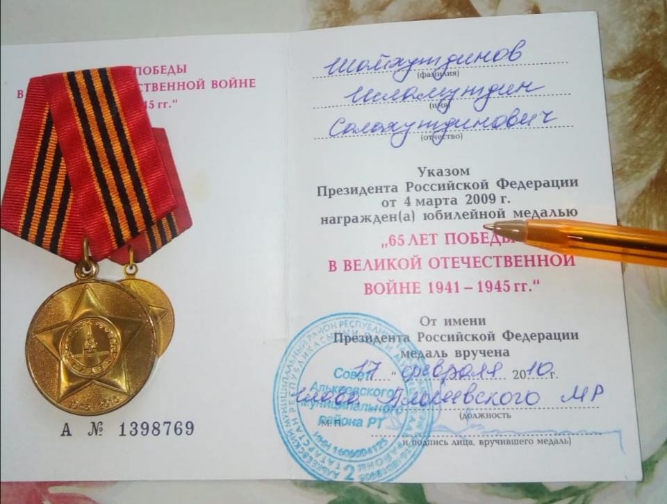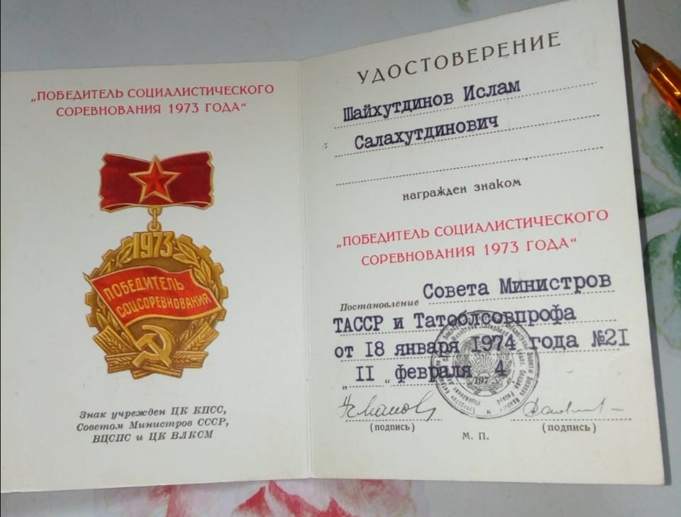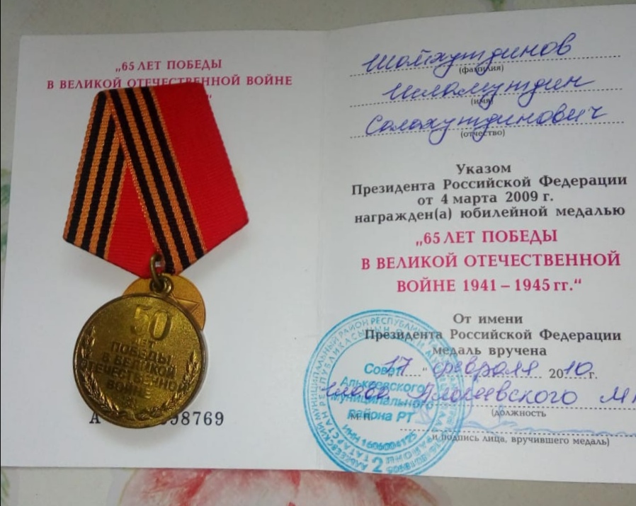 ШАЙХУТДИНОВ Исламутдин Салахутдинович (р.07.07.1930, д.Новые Камкино Спасского кантона ТАССР, ныне Алькеевского р-на РТ). Работал разнорабочим, скотником, механизатором, бригадиром полевой бригады в к-зе «Кызыл йолдыз» (1942 – 57), управляющим в с-зе «Алпаровский» (1957-67), директором хлебокомбината (1980 – 83), рабочим в райсвязи почтового отделения (1985-90). Награжден знаком «Победитель социалистического соревнования 1973» (1974), медалью «За доблестный труд» (2016) и юб. медалями. Ветеран труда (1999).
