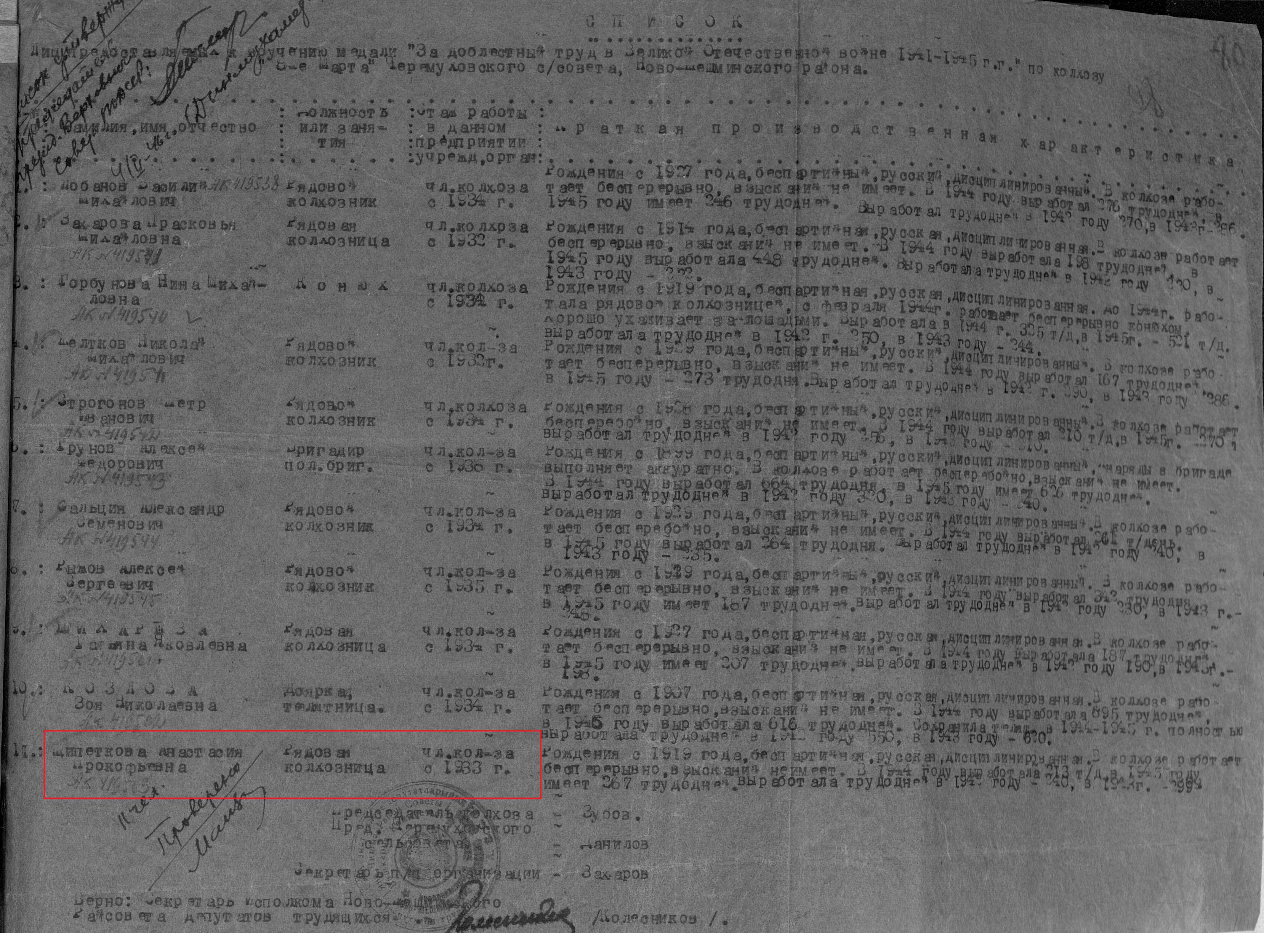 Щепеткова Анастасия Прокопьевна родилась в 1919 году в с.Сл Черемуховая Казанской губернии Чистопольского уезда Новошешминской волости. В годы Великой Отечественной войны работала в колхозе «8-е Марта» рядовой колхозницей. Награждена медалью "За доблестный труд в Великой Отечественной войне 1941–1945 гг." (акт от 28 апреля 1947., фонд 3610, опись 2, дело № 324, лист 59). Умерла в 2003 году, похоронена на сельском кладбище с.Сл.Черемуховая.