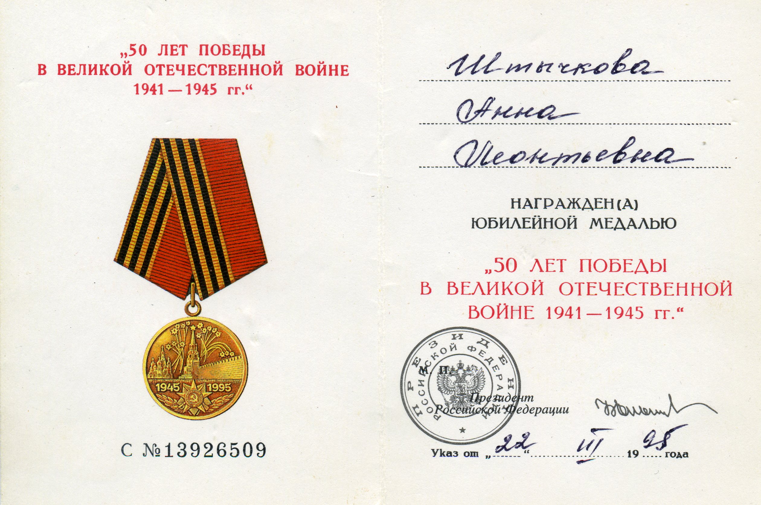 ШТЫЧКОВА АННА ЛЕОНТЬЕВНА