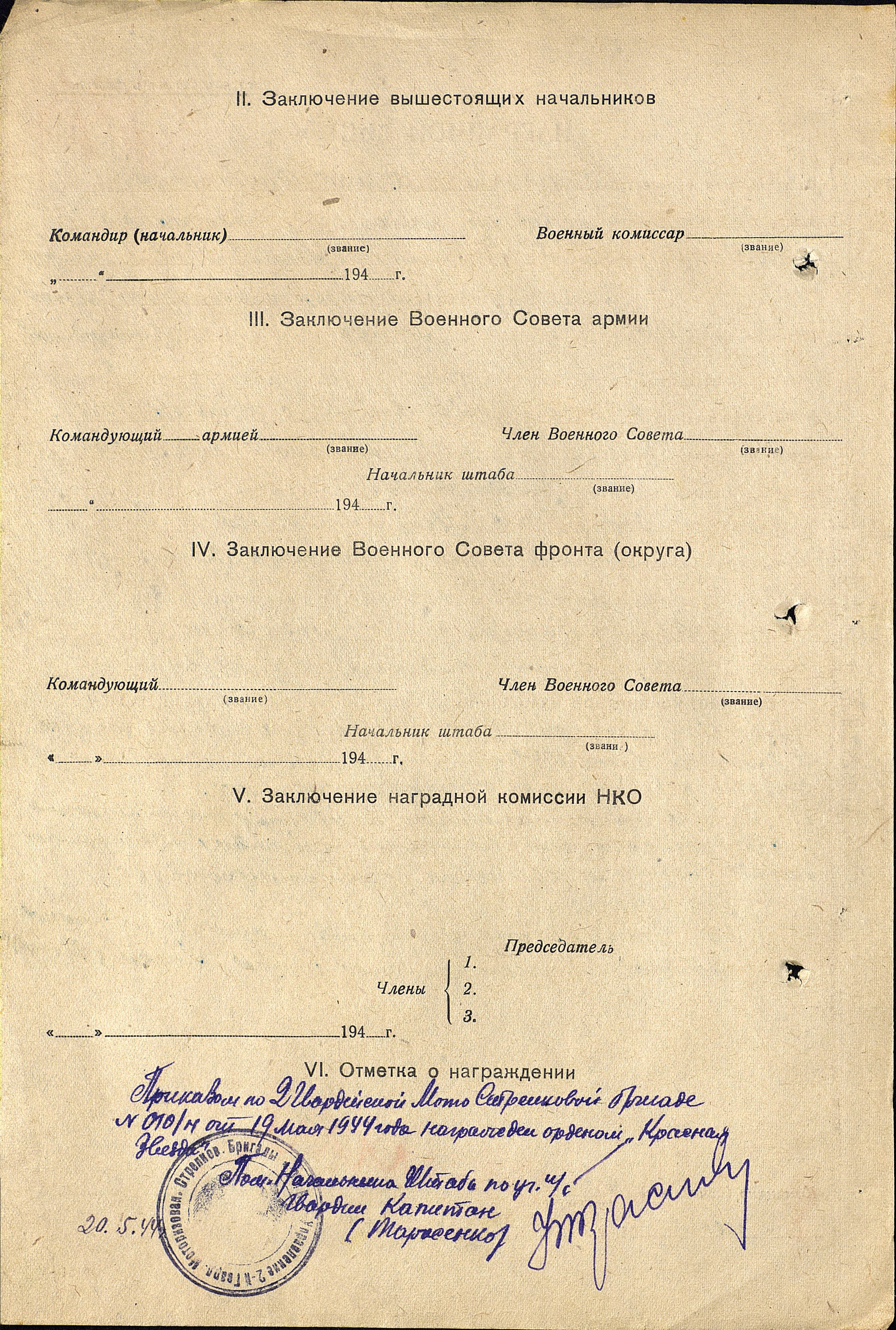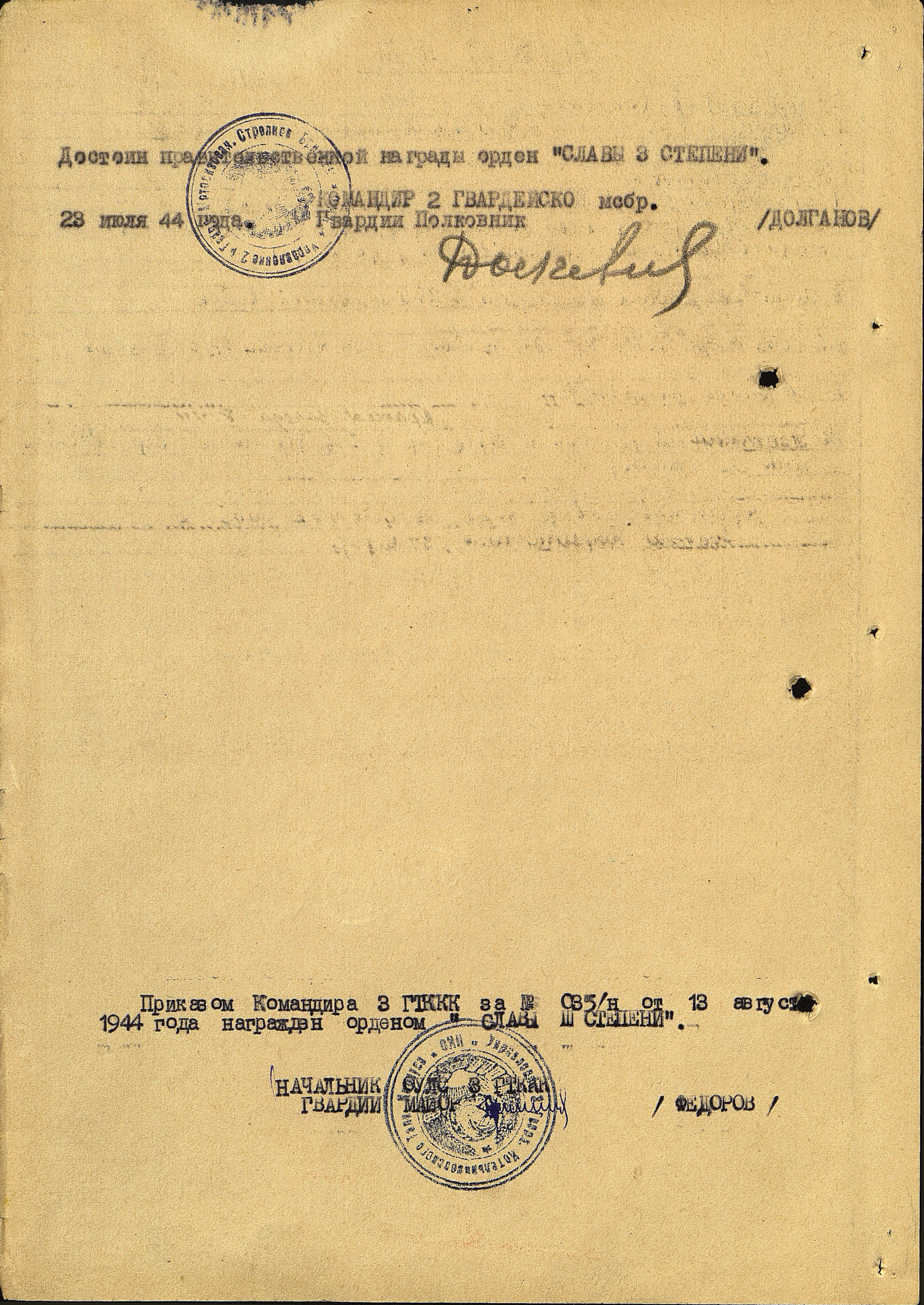 Был награжден орденами: «Красной Звезды», «Славы 3-ей степени», «Отечественной войны 1-ой степени», медалями: «За боевые заслуги», «За отвагу» и другими юбилейными медалями.