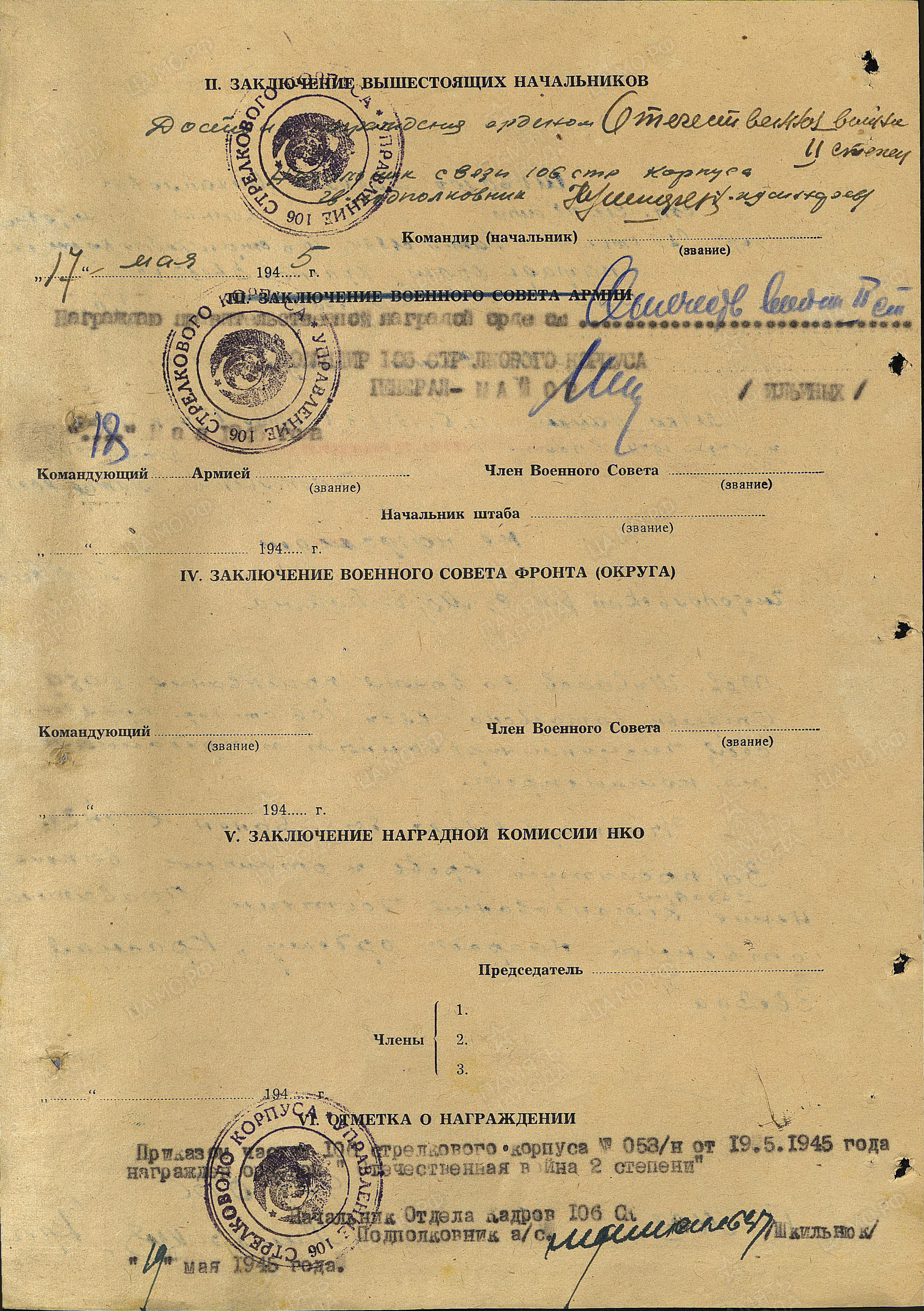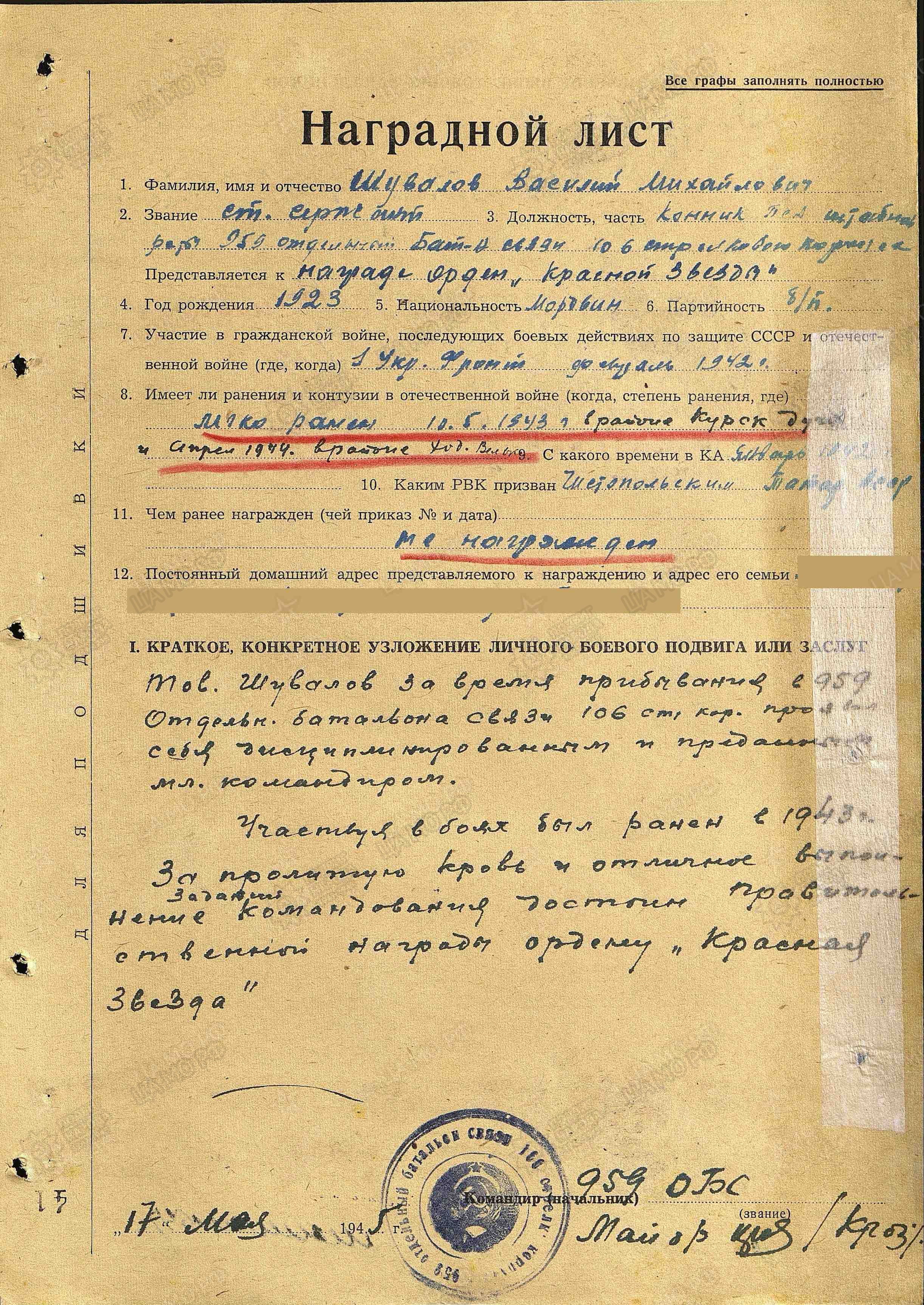 Так, в 1942 году началась новая трудная и опасная страница в его жизни. Ускоренная школа младшего комсостава, присвоение звания и отправка на Калининский фронт. Попал в разведку, так и прошел с пехотой трудные и долгие дороги войны. Воевал в составе 959-го отдельного батальона связи 106-го стрелкового корпуса 4-го Украинского Фронта.