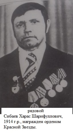 Сибаев Харас Шарифуллович(р.1914, с. Старое Алпарово Спасского у. Казанской губ.(ныне Алькеевского района РТ) – ?), участник Вел. Отеч. войны. В Кр. Армии с 1941, призван Алькеевским РВК ТАССР.