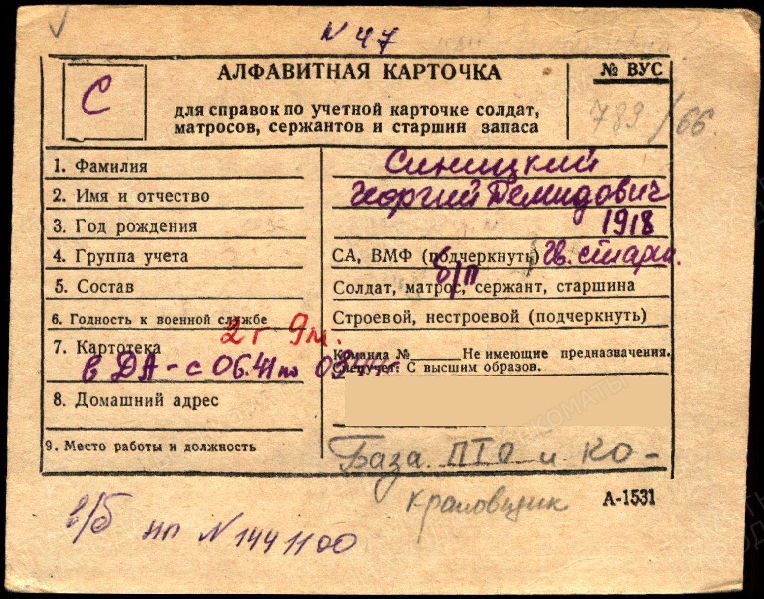 СИНИЦКИЙ ГЕОРГИЙ ДМИТРИЕВИЧ