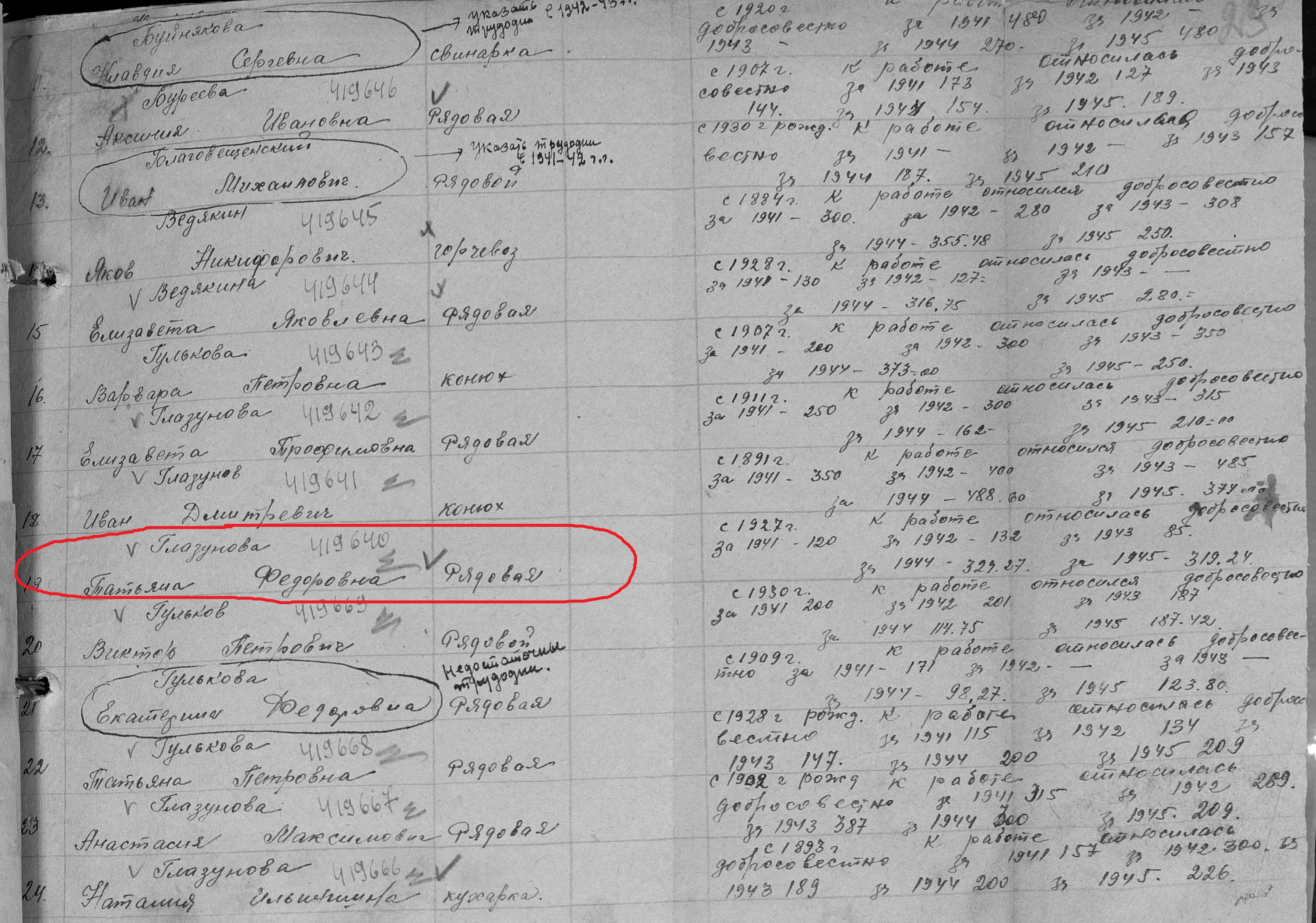 Скачкова (Глазунова) Татьяна Федоровна родилась 29 декабря 1927 года в с.Новошешминск Чистопольского кантона ТАССР. В годы Великой Отечественной войны работала в колхозе им.Молотова рядовой колхозницей. Награждена медалью "За доблестный труд в Великой Отечественной войне 1941–1945 гг." (Акт от 28 апреля 1947 г, фонд 3610, опись 2, дело № 325, лист 23, № 419640). Умерла 24 октября 1992 года, похоронена на сельском кладбище с.Новошешминск.
