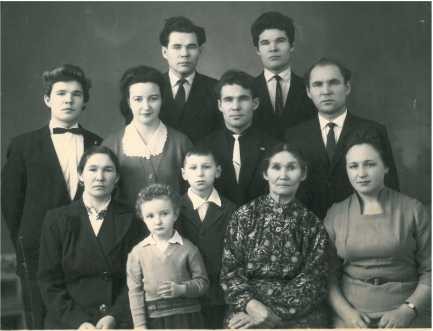 Зима 1945-1946 гг. была очень суровой. Все озимые вымерзли, а весной сеять было нечего. Наступил страшный голод. В годы войны семье помогал брат Евгений, ему было 17 лет. В 15 лет он уже работал на колесном тракторе (ХТЗ). Помню, как в 1944 году, он, заливая воду в радиатор, обварил паром руки. В этом же, 1944 году, Женю и его товарищей, провожали всем селом на фронт. Вернулся домой через 7 лет, имея на груди два ордена и четыре медали. Вскоре он по вербовке уехал на нефтепромыслы Крайнего Севера. Брат Иван в 1953 году уехал в Казахстан поднимать целину. Он почётный целинник, отслужил в армии. В Казани закончил педагогический институт, многие годы работал на заводе КАПО им. Горбунова. Он автор нескольких поэтических сборников. Писал стихи и брат Зиновий, но печатался редко, работал доцентом в Казанском авиационном институте. Младший из братьев, Сергей, окончив Пермский фармацевтический институт, стал работать в Казанском аптекоуправлении. Он умер в 28 лет, и в его ранней смерти также повинна война. Сестра Роза - любимица отца, к сожалению, не смогла получить высшего образования. В 13 лет она уже работала на ферме, затем навсегда осталась в деревне. Была очень счастлива в семейной жизни.