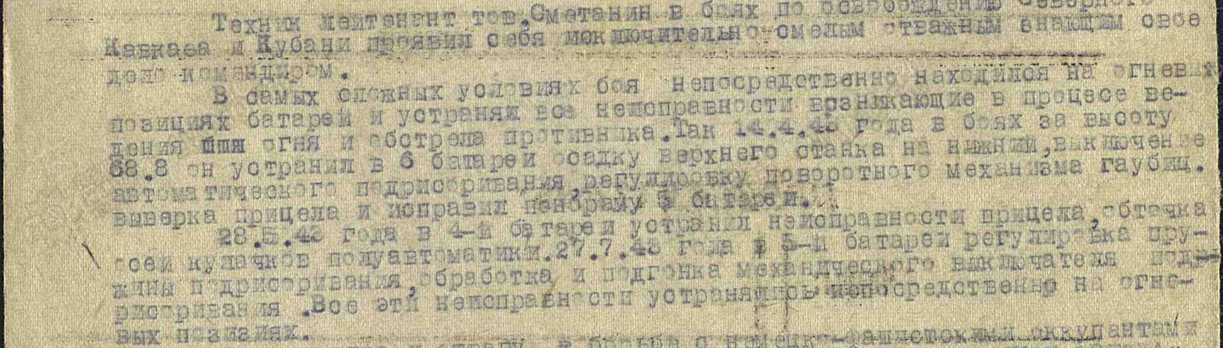 23 августа 1943 года награжден орденом Красной Звезды.