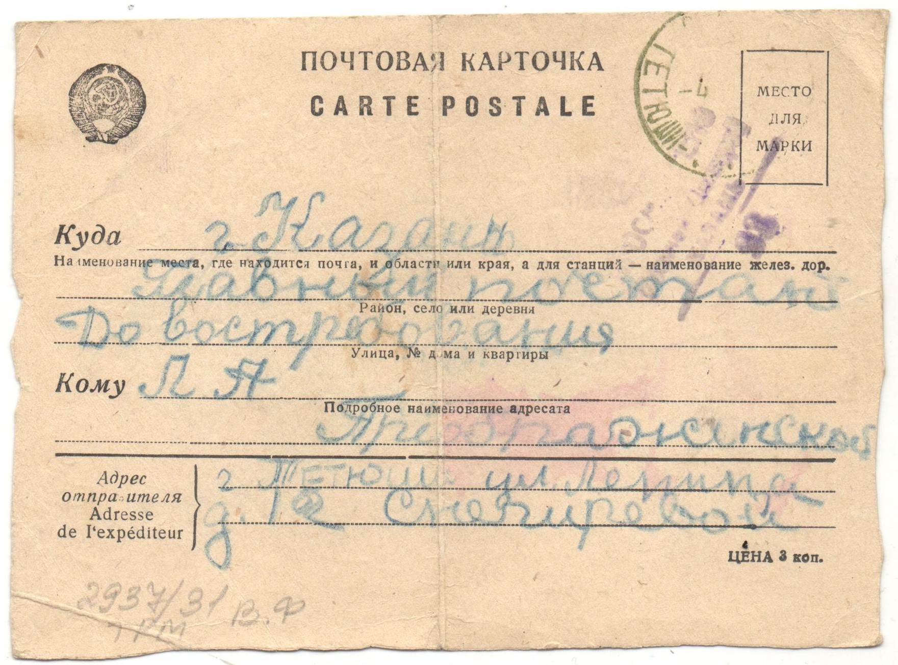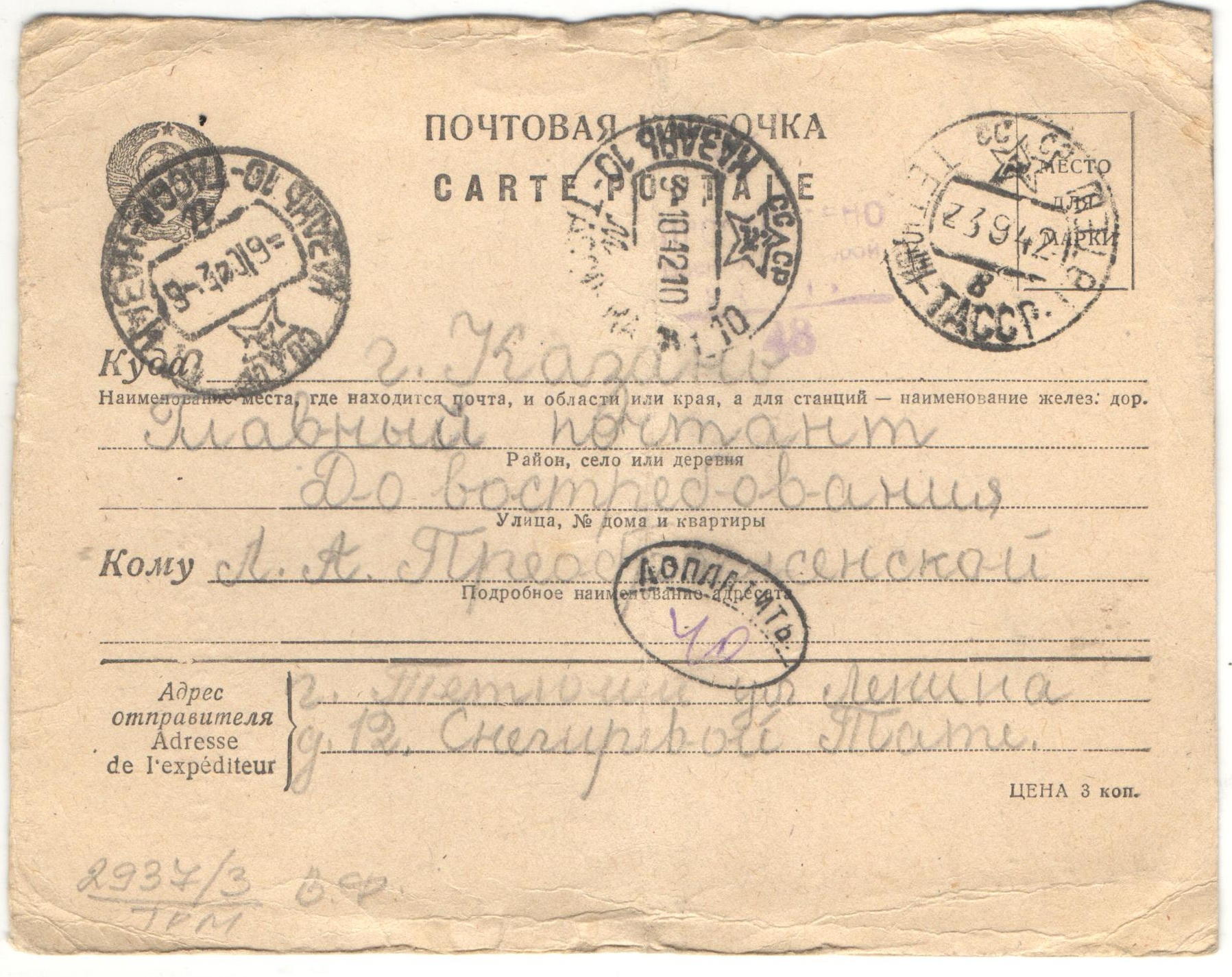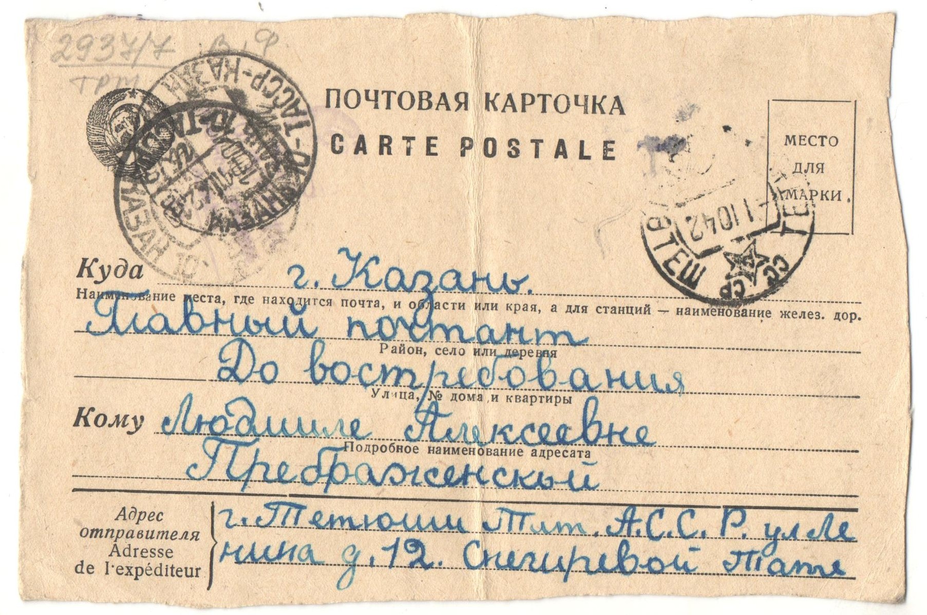 Большинство писем Таты адресованы ее тете – Преображенской Людмиле Алексеевне, эвакуированной в город Казань.