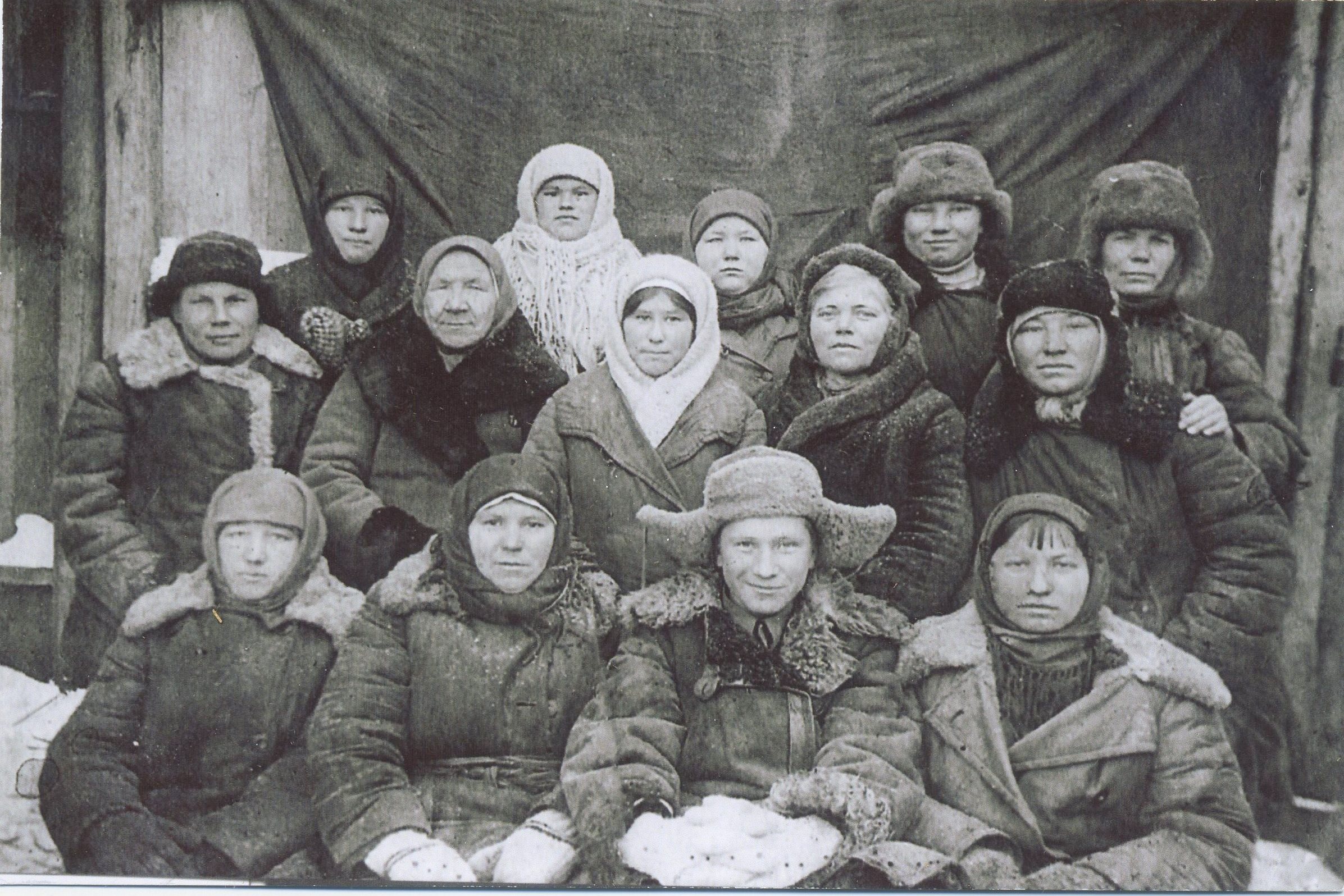 Этот снимок сделан в ноябре 1941 г. На фото колхозники деревни Солонцы перед отправкой на строительство оборонительных сооружений за Волгой.