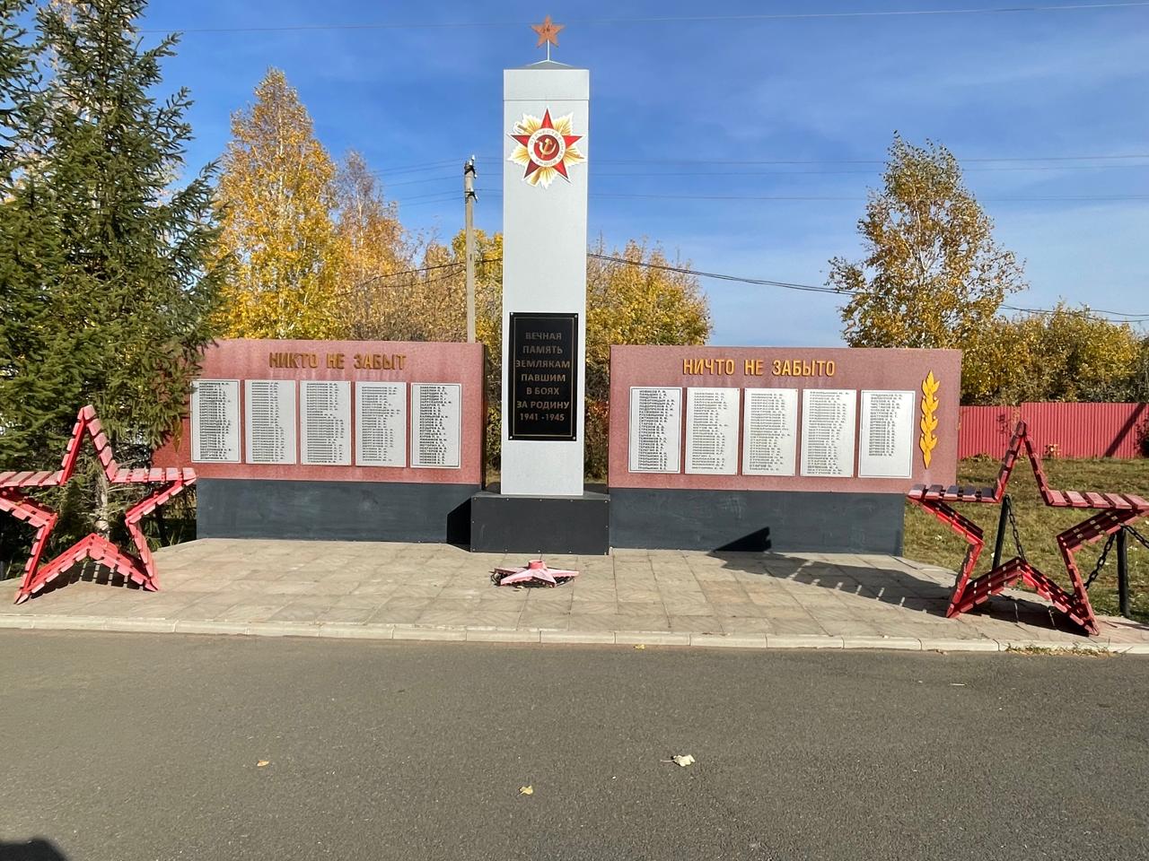 Стела была возведена в честь героев, погибших в Великой Отечественной войне 1941-1945 годов. Установлена в 2002 году. Стела выполнена из кирпича, бетона и мрамора. На стеле размещены мемориальные доски, на которых высечены слова памяти участникам Великой Отечественной войны: «Никто не забыт, ничто не забыто» и «Вечная память землякам, павшим в боях за Родину 1941-1945 гг.». На стеле расположены десять мемориальных досок, на которых увековечены имена 259 человек, отдавших свою жизнь за Родину.