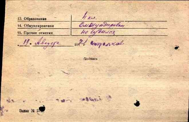С 05.1942 по 08.1942г. на излечении в эвакогоспитале.