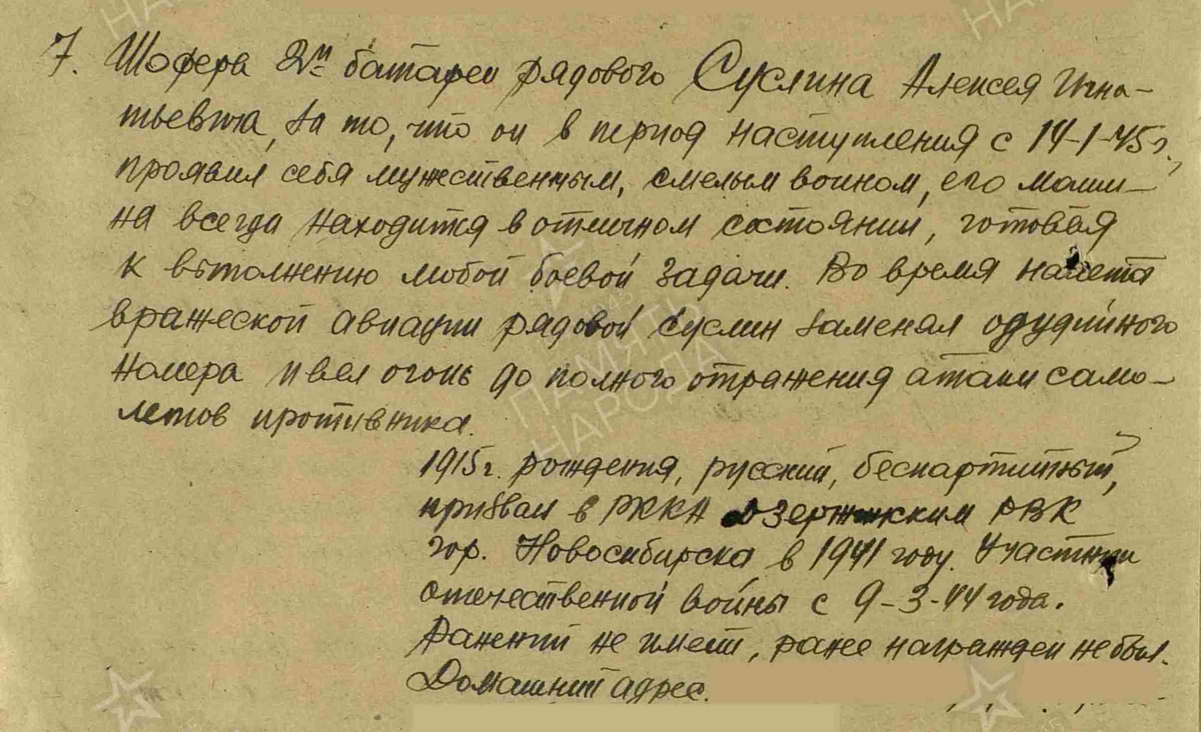 https://pamyat-naroda.ru/heroes/rvk-chelovek_voenkomat32623762/?backurl=...Алексей%26last_name%3DСуслин%26middle_name%3DИгнатьевич&