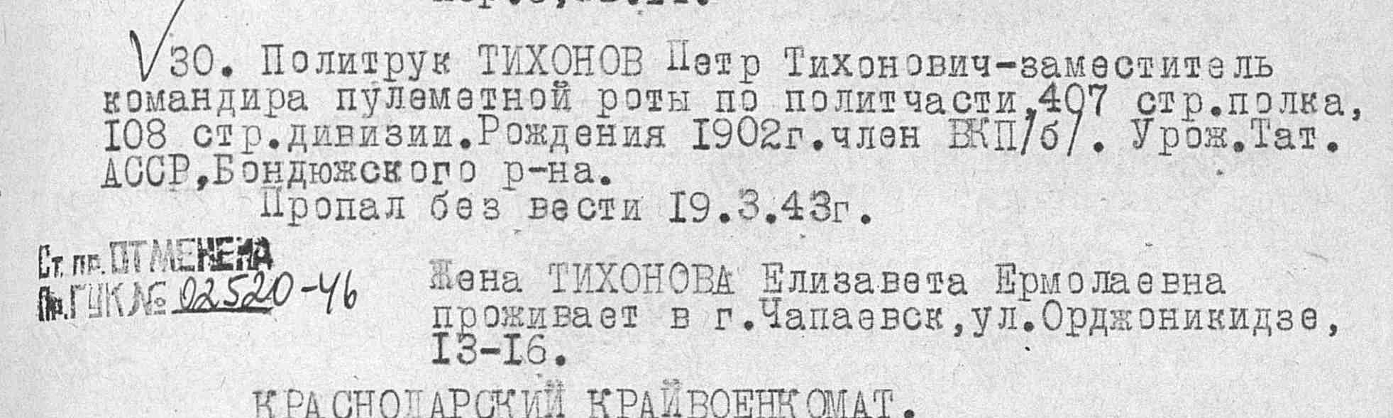ТИХОНОВ ПЕТР ТИХОНОВИЧ