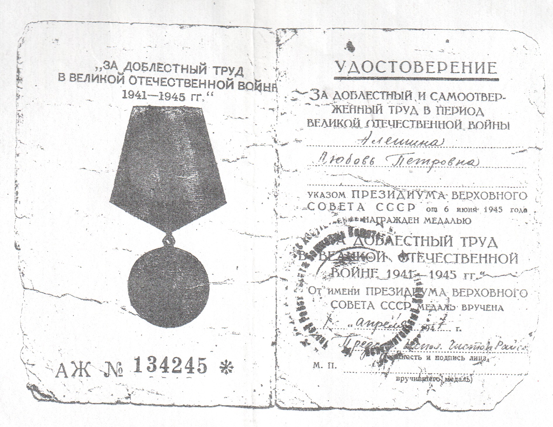 ТРОШИНА (АЛЕШИНА) ЛЮБОВЬ ПЕТРОВНА