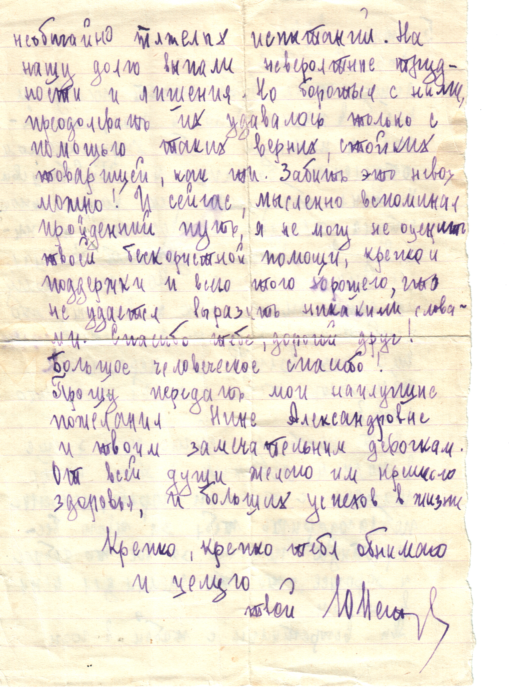 Они дружили и после войны и дорожили друг другом. Это была искренняя, крепкая мужская дружба, полная уважения и заботливого отношения, что прослеживается и в последнем письме Петрова другу. Оно написано незадолго до смерти, 5 июня 1968 года, накануне операции, которую смертельно больной доктор не перенёс: «… сейчас пока ещё я в полном сознании, я хочу попрощаться с тобой и горячо, искренне поблагодарить тебя за твою бескорыстную помощь, за всё то доброе и хорошее, что ты сделал для меня в жизни. Мы встретились с тобой в годы необычайно тяжёлых испытаний. На нашу долю выпали невероятные трудности и лишения. Но бороться с ними, преодолевать их удавалось только с помощью таких верных, стойких товарищей, как ты. Забыть это невозможно! И сейчас, мысленно вспоминая пройденный путь, я не могу не оценить твоей бескорыстной помощи, крепкой поддержки и всего того хорошего, что не удаётся выразить никакими словами. Спасибо тебе, дорогой друг! Большое человеческое спасибо!»так подсказывало