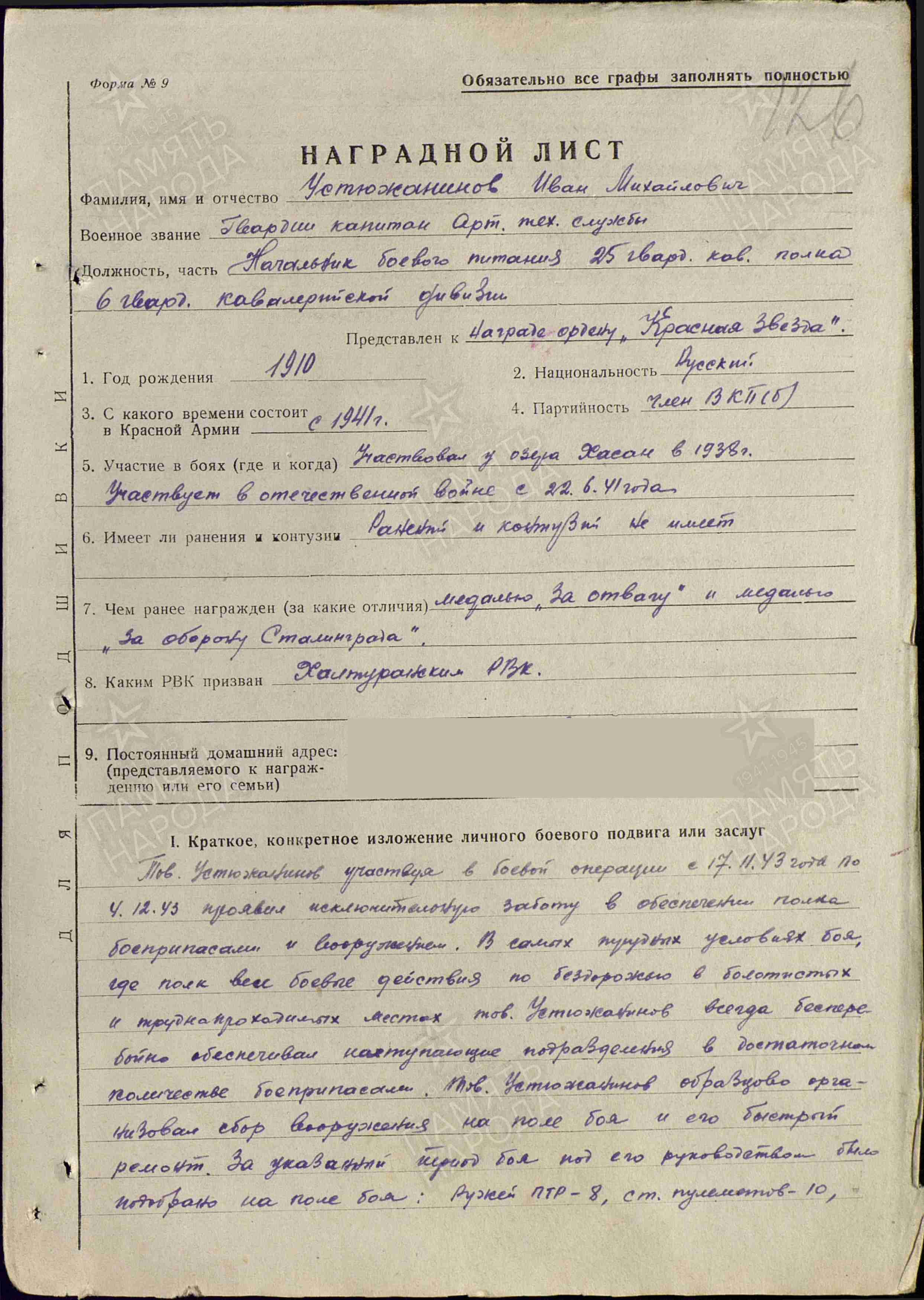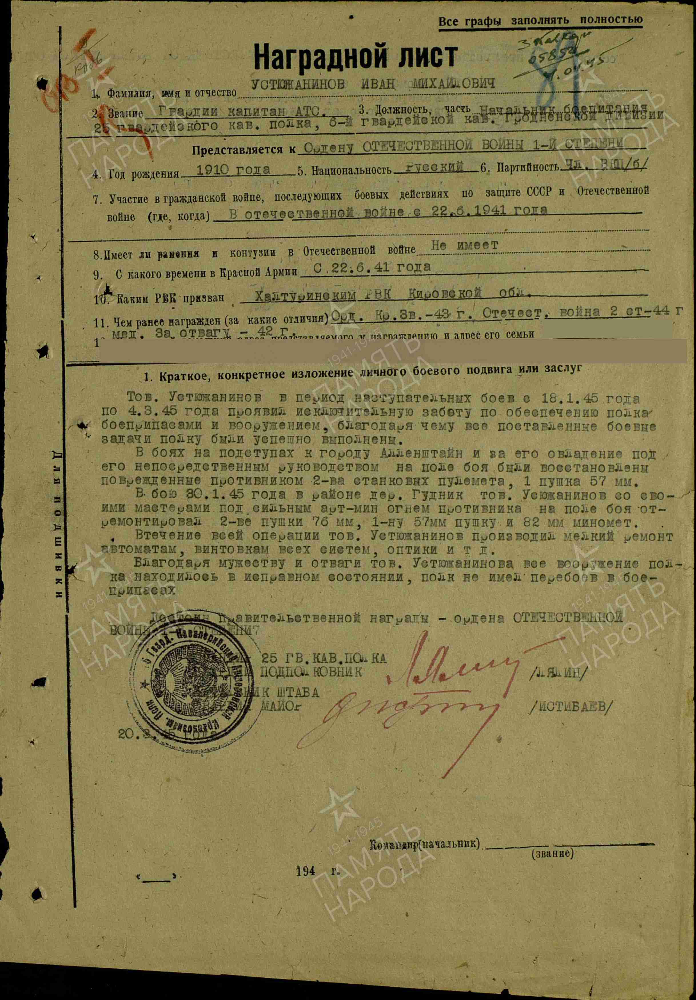 УСТЮЖАНИНОВ ИВАН МИХАЙЛОВИЧ