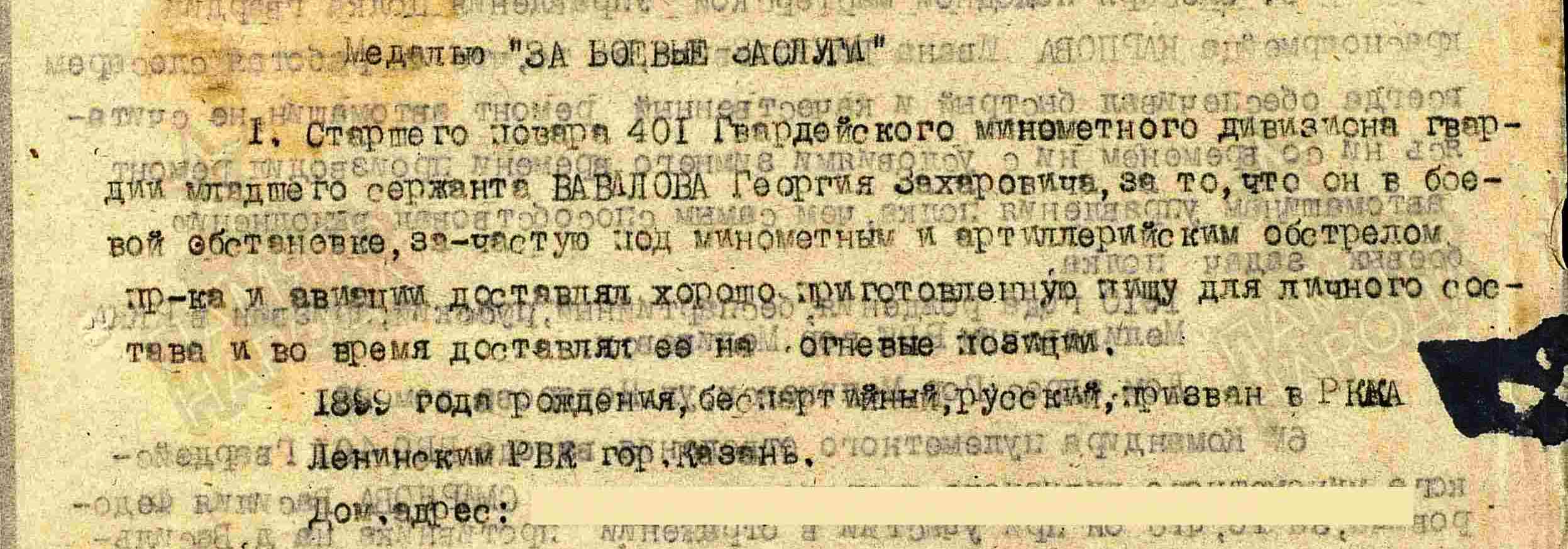 ВАВИЛОВ Георгий Захарович, 1899, с. Мурзиха. Мобилизован 14 мая 1942 Ленинским РВК г. Казань. Красноармеец, повар-инструктор. В боях с сент. 1942 на Брянском, Юго-Западном, 3 Украинском фронте. Гв. мл. сержант, ст. повар 401 отд. гв. миномётного дивизиона 301 гв. МинП резерва СВГК. Награждён медалью «За боевые заслуги». Демобилизован 7 авг. 1945.