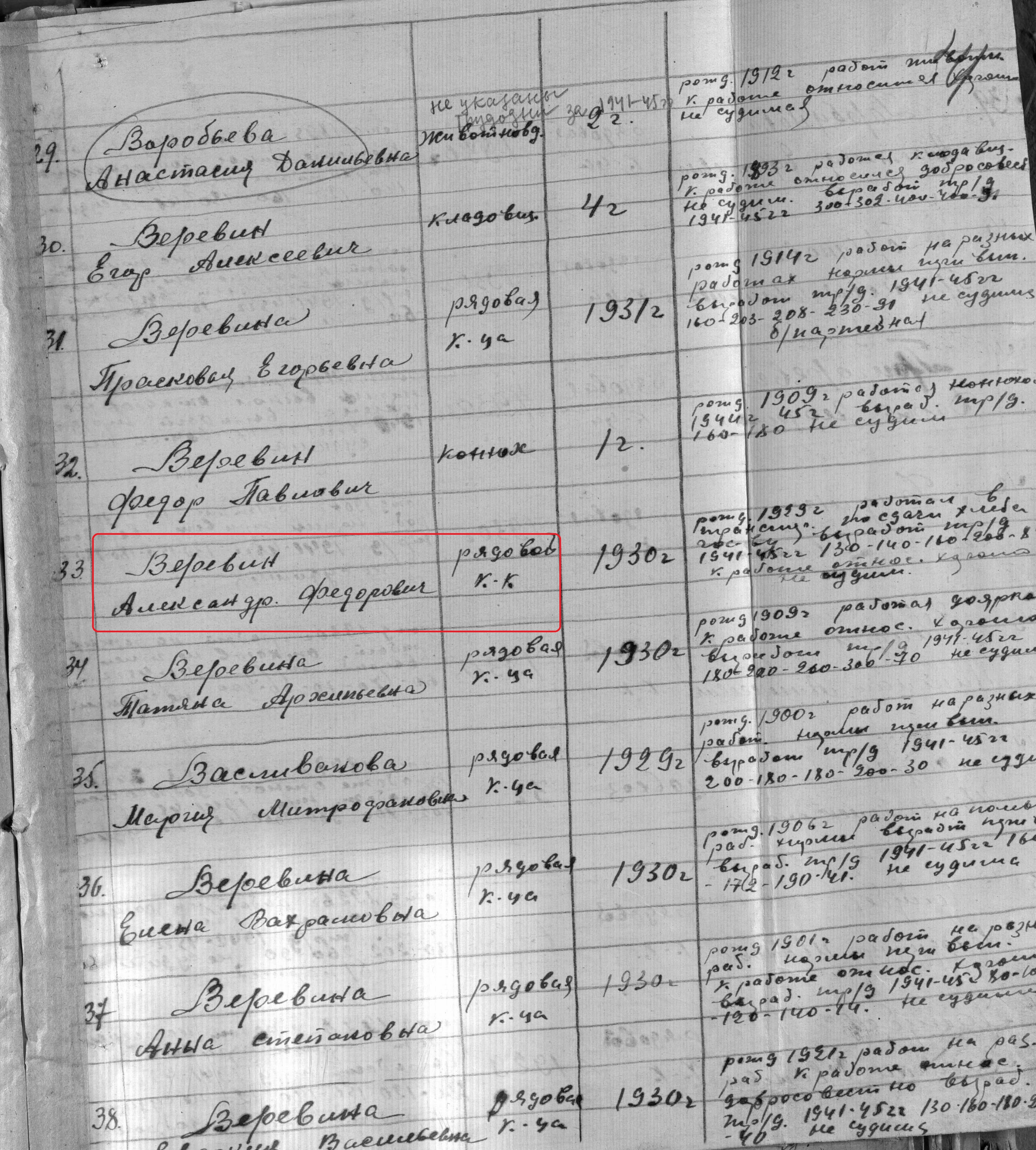 Веревин Александр Федорович родился в 1929 году. Место жительства: с.Сл.Петропавловская Ново-Шешминский район ТАССР. В годы Великой Отечественной войны работал в колхозе им. Куйбышева рядовым колхозником. Награжден медалью "За доблестный труд в Великой Отечественной войне 1941–1945 гг." (Акт от 04. 1946г, фонд 3610, опись 2, дело № 175, лист 41, № 131542).