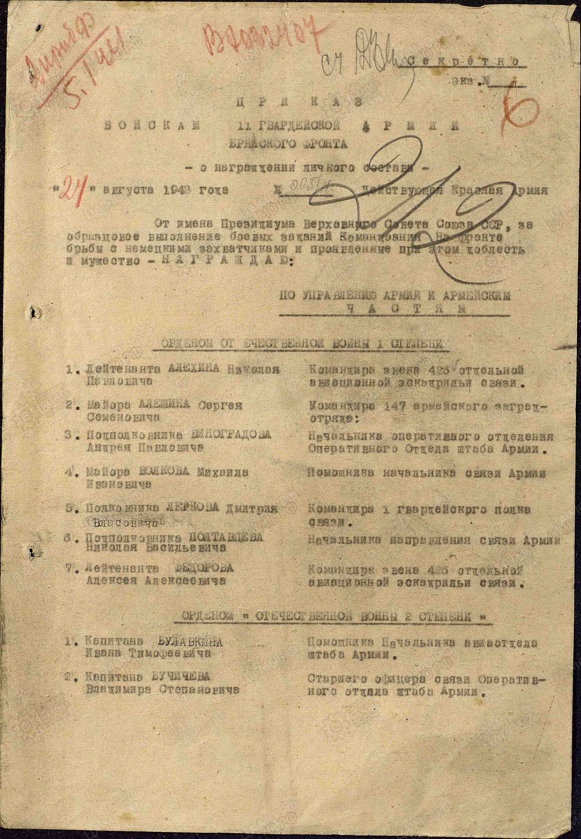 Награжден орденом Красной Звезды 30.10.1942 г., из наградного листа: