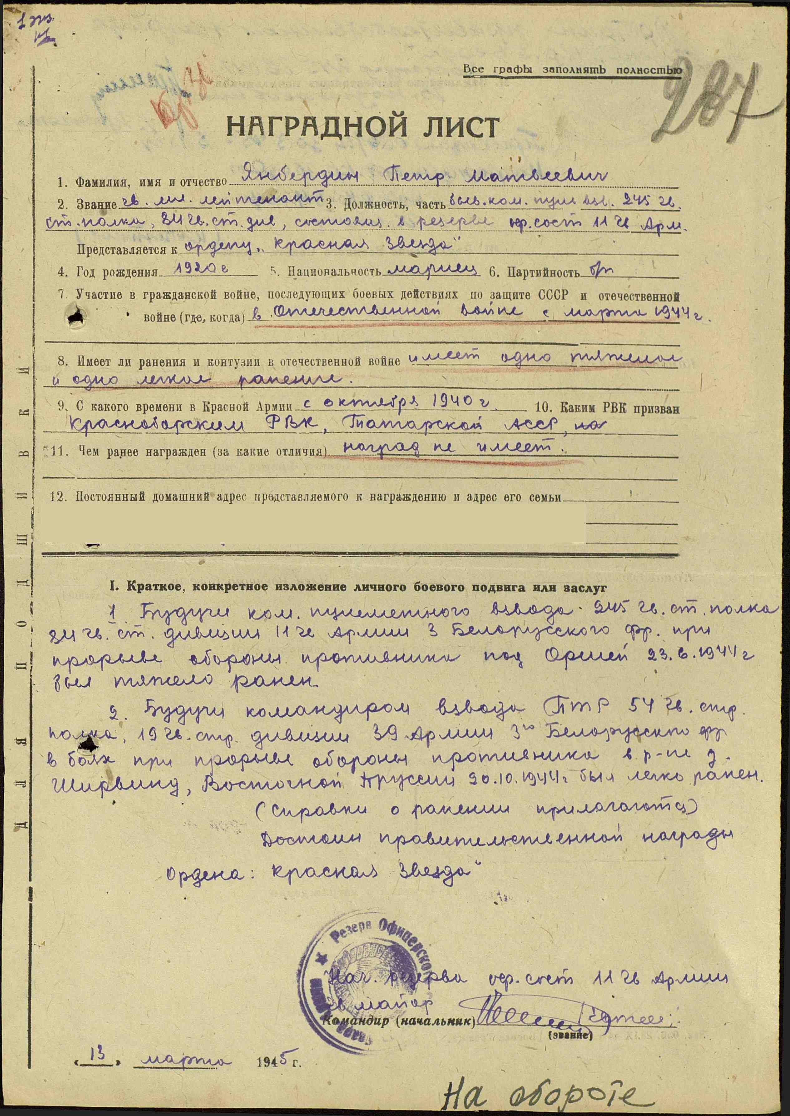 ЯНБЕРДИН ПЕТР МАТВЕЕВИЧ
