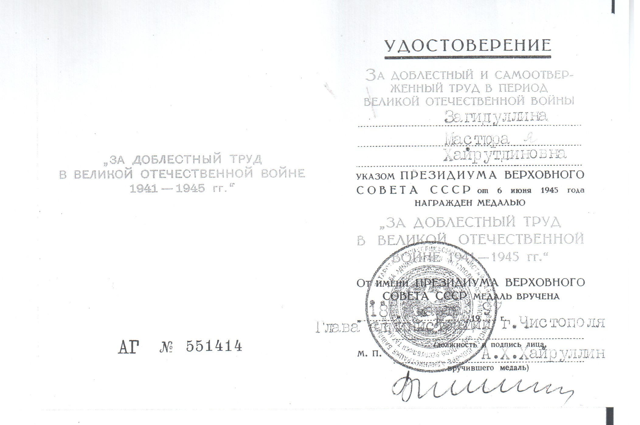 ЗАГИДУЛЛИНА (ГИЛЯЗЕТДИНОВА) МАСТЮРА ХАЙРУТДИНОВНА