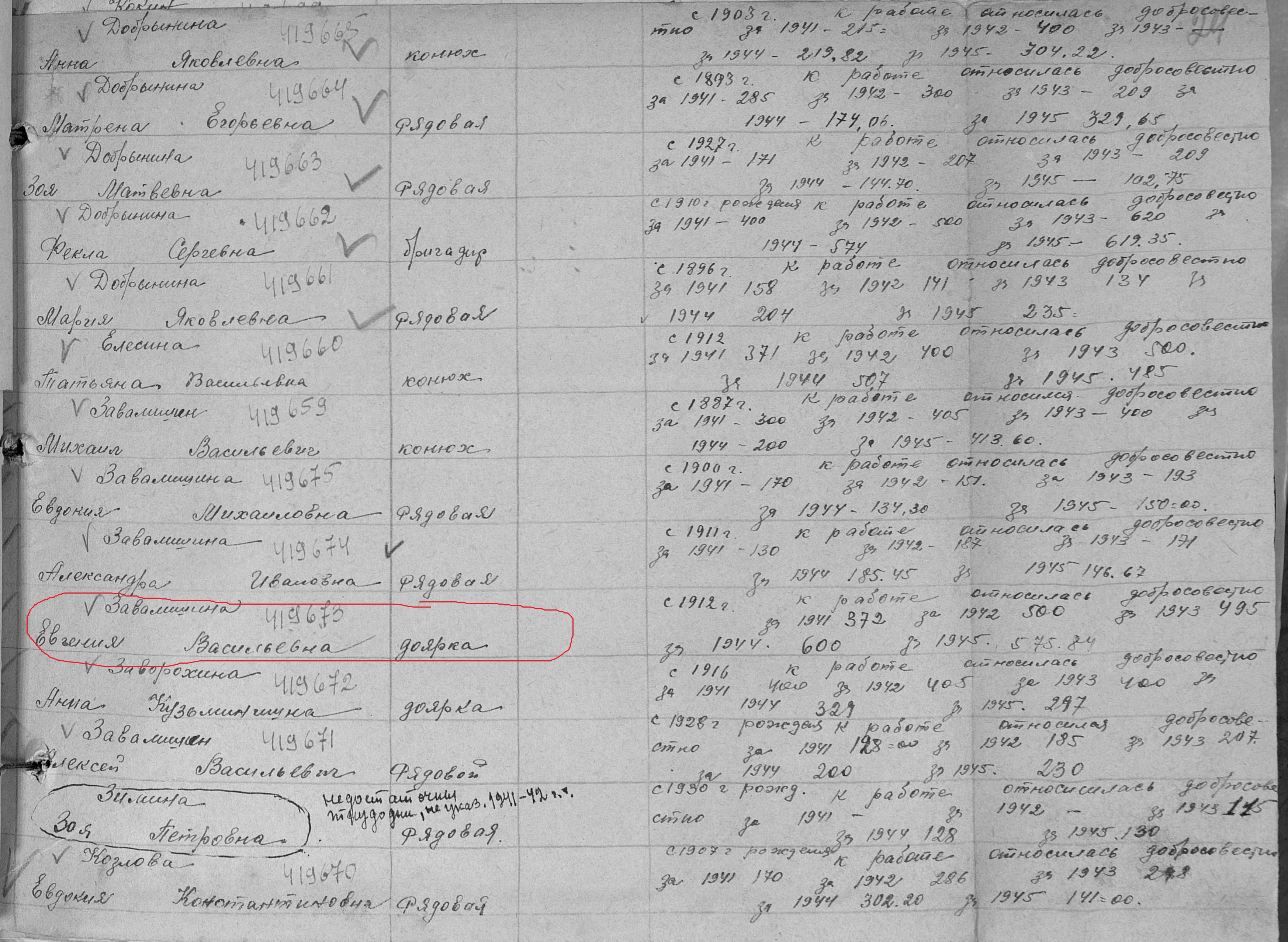 Завалишина Евгения Васильевна родилась 21 декабря 1912 года в с.Новошешминск Казанской губернии Чистопольского уезда Новошешминской волости. В годы Великой Отечественной войны работала в колхозе им.Молотова дояркой. Награждена медалью "За доблестный труд в Великой Отечественной войне 1941–1945 гг." (Акт от 28 апреля 1947 г, фонд 3610, опись 2, дело № 325, лист 24, АК № 419673). Умерла 14 апреля 2006 года, похоронена на сельском кладбище с.Сл.Архангельская.