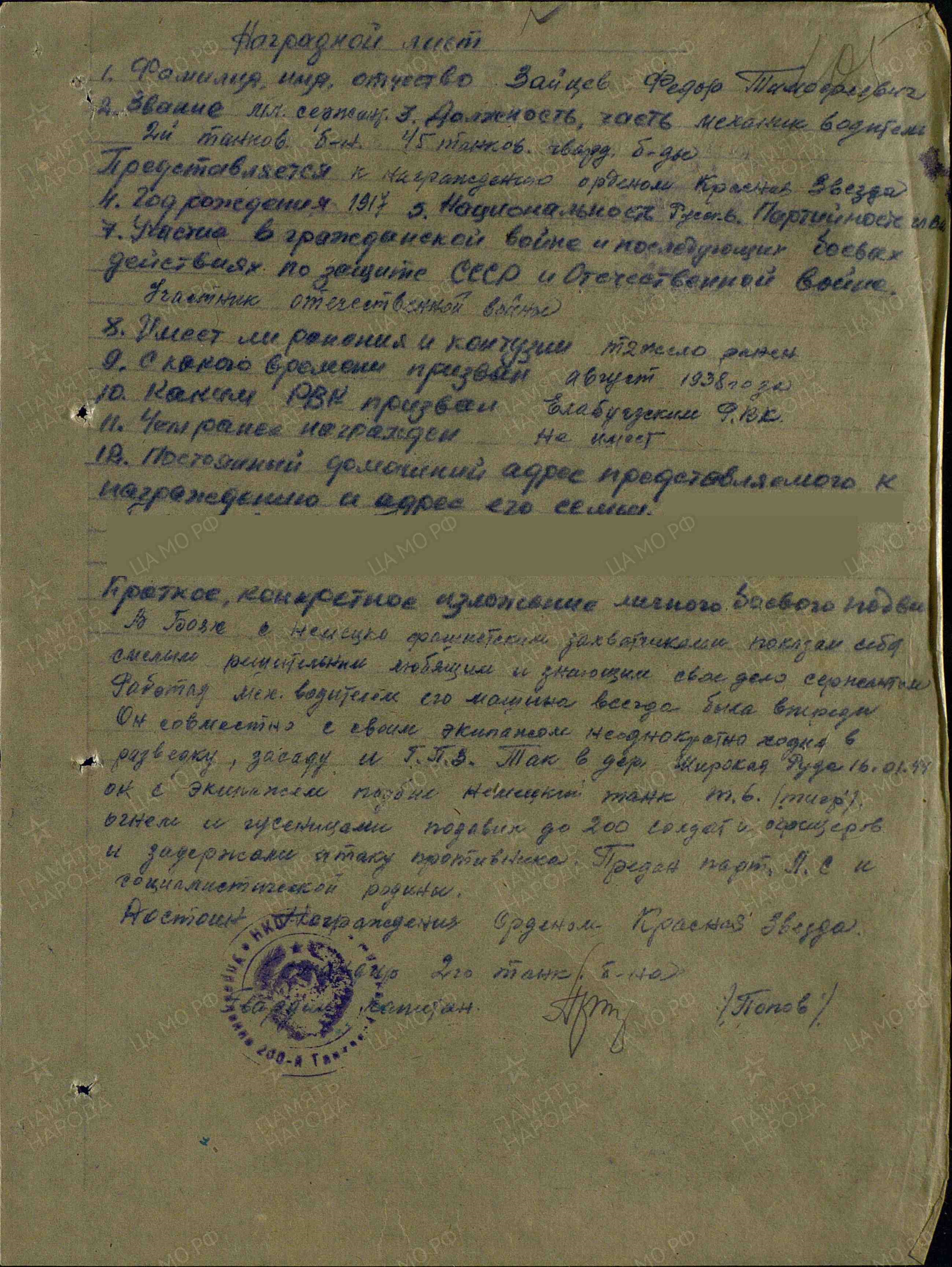 ЗАЙЦЕВ ФЕДОР ТИМОФЕЕВИЧ