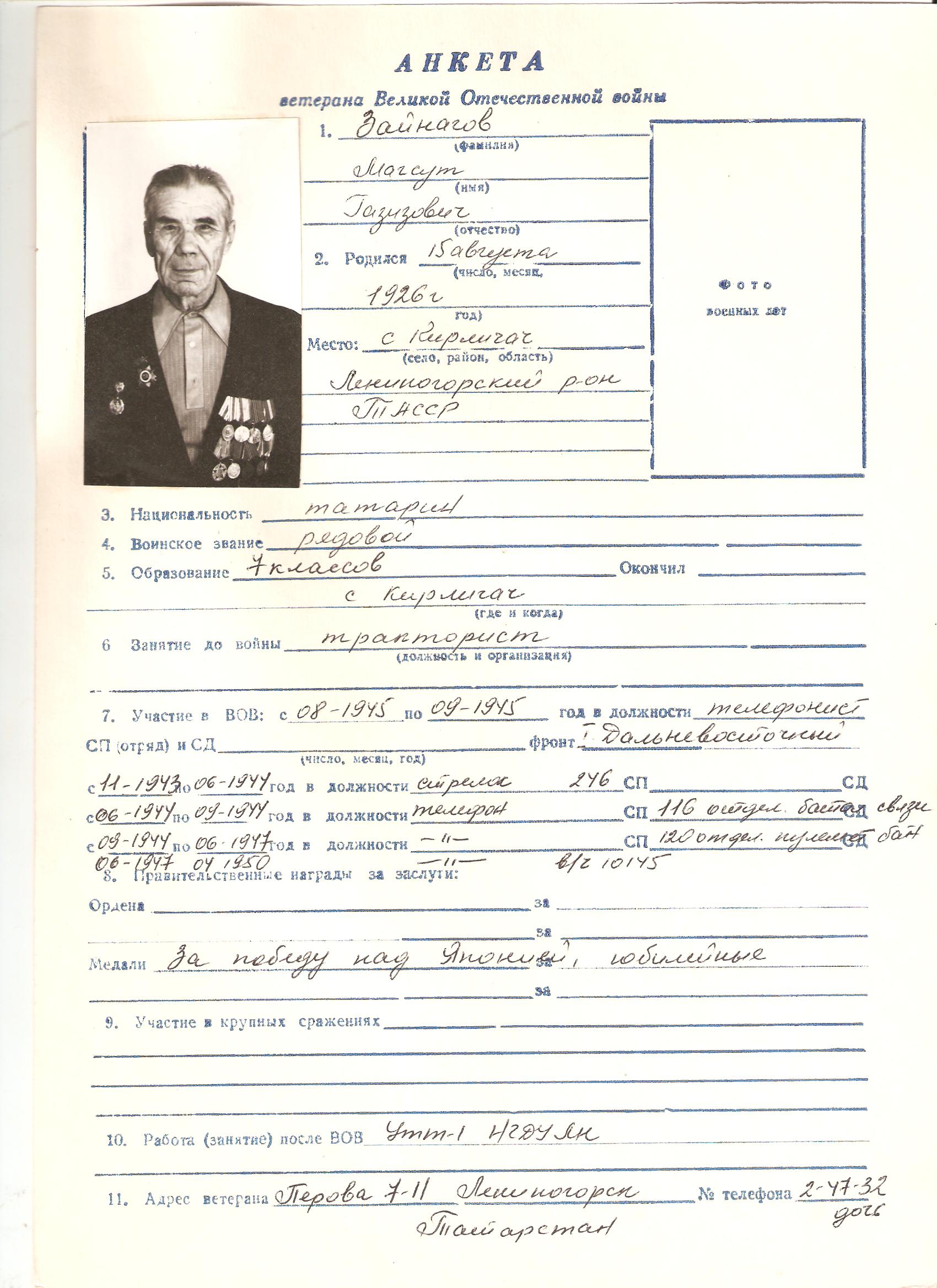 ЗАЙНАГОВ МАГСУТ ГАЗИЗЯНОВИЧ