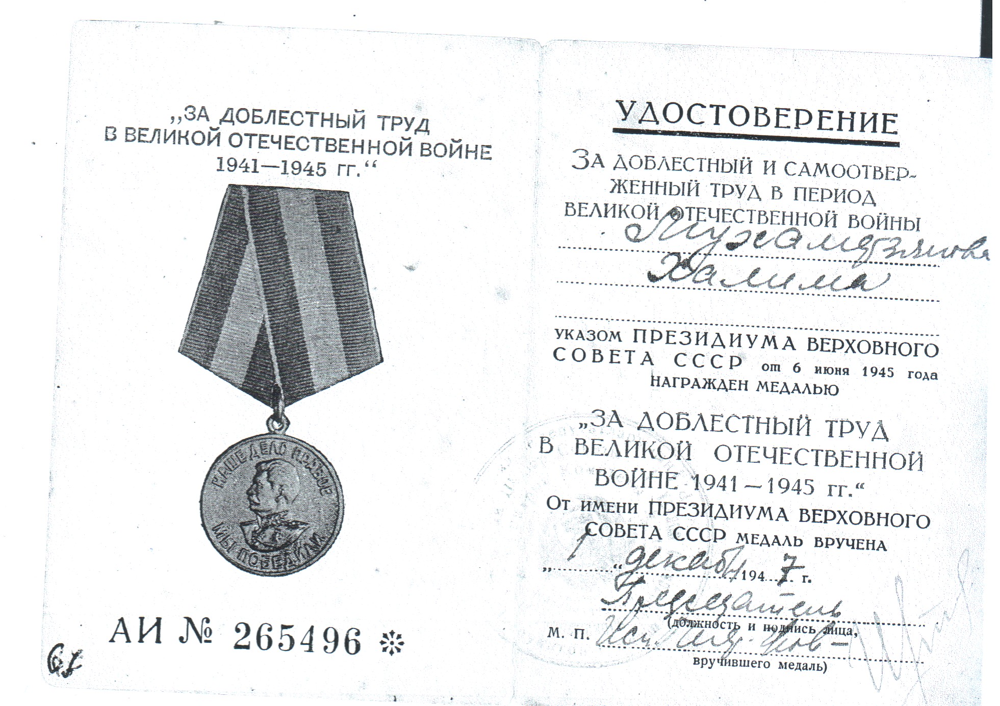 ЗАЙНУТДИНОВА (МУХАМЕТЗЯНОВА) ХАЛИМЯ ЗАРИПОВНА
