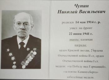 Сорокин Георгий Васильевич Георгий Васильевич родился в 1924 году в городе Чистополь, Чистопольского района ТАССР. 20 января 1942 года был призван в ряды Красной Армии Чистопольским РВК, с декабря 1943 года участник Великой Отечественной войны. Служил в звании гвардии лейтенант в должности командира фотограмметрического взвода Разведывательного Артиллерийского дивизиона 19 Армейской Гвардейской Пушечной Артиллерийской Режицкой бригады. Был награжден орденом «Александра Невского» (26.02.1944), орден Красной Звезды (23.04.1945). Источники: