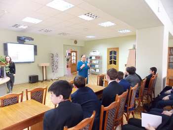 5 мая в Центральной библиотеке на мероприятии «От фильма к книге и обратно», посвященного 71-летию победы в Великой Отечественной войне, состоялась встреча учащихся девятых классов с почетным гостем, участником Великой Отечественной войны Шангараевым Н.Г. Учащиеся с интересом слушали рассказ библиотекаря и гостя о трагических событиях военной поры, который сопровождался мультимедийной слайд - презентацией, видеоматериалом, буктрейлерами.