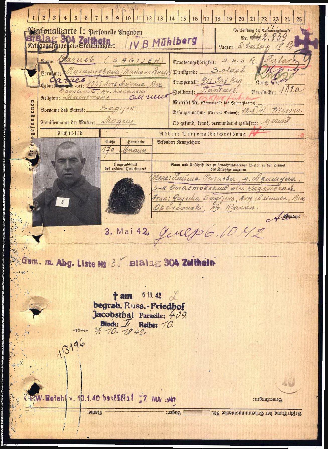 г.Цайтхайн-II,ст.Якобсталь,уч.409,шталаг 4 B(в плен:12.10.41:Вязьма)