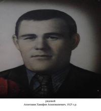 Әхмәтшин Хәнәфия Әхмәтвәли улы 1925 елда ТАССРның Әлки районы Иске Салман авылында туа. Фронтовик. Бөек Ватан сугышы ветераны. 2001 елда вафат.