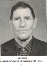 Малышев Сергей Михайлович 1918 елда Казан губернасының Спас өязе Урта Биктимер авылында (хәзер ТР Әлки районы) туган. Бөек Ватан сугышы ветераны. 1941 елда ТАССРның Әлки район хәрби комиссариатыннан алына. 1978 елда вафат.