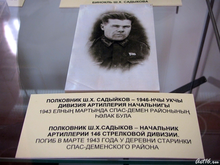 1908 елны туңан. Казанда оешкан 146 нчы укчылар дивизиясенең артиллерия командиры батырлыгы турында бөтен илебез белә. 1908 елда Каргалы авылында туган. Шаһи Хатып улы Садыйковны солдатлар яратып һәм хөрмәт итеп “артиллерия атасы” дип йөртәләр, аңа багышлап җырлар да чыгаралар. 146 нчы дивизия, Спас-Деменск юнәлешендә Гудериан танк армиясенә каршы сугышып, 1943 елның мартына 90нан артык торак пунктны азат итә. Шушы бәрелешләрдә полковник Садыйков һәлак була.