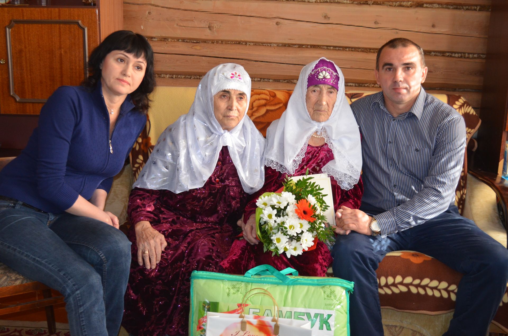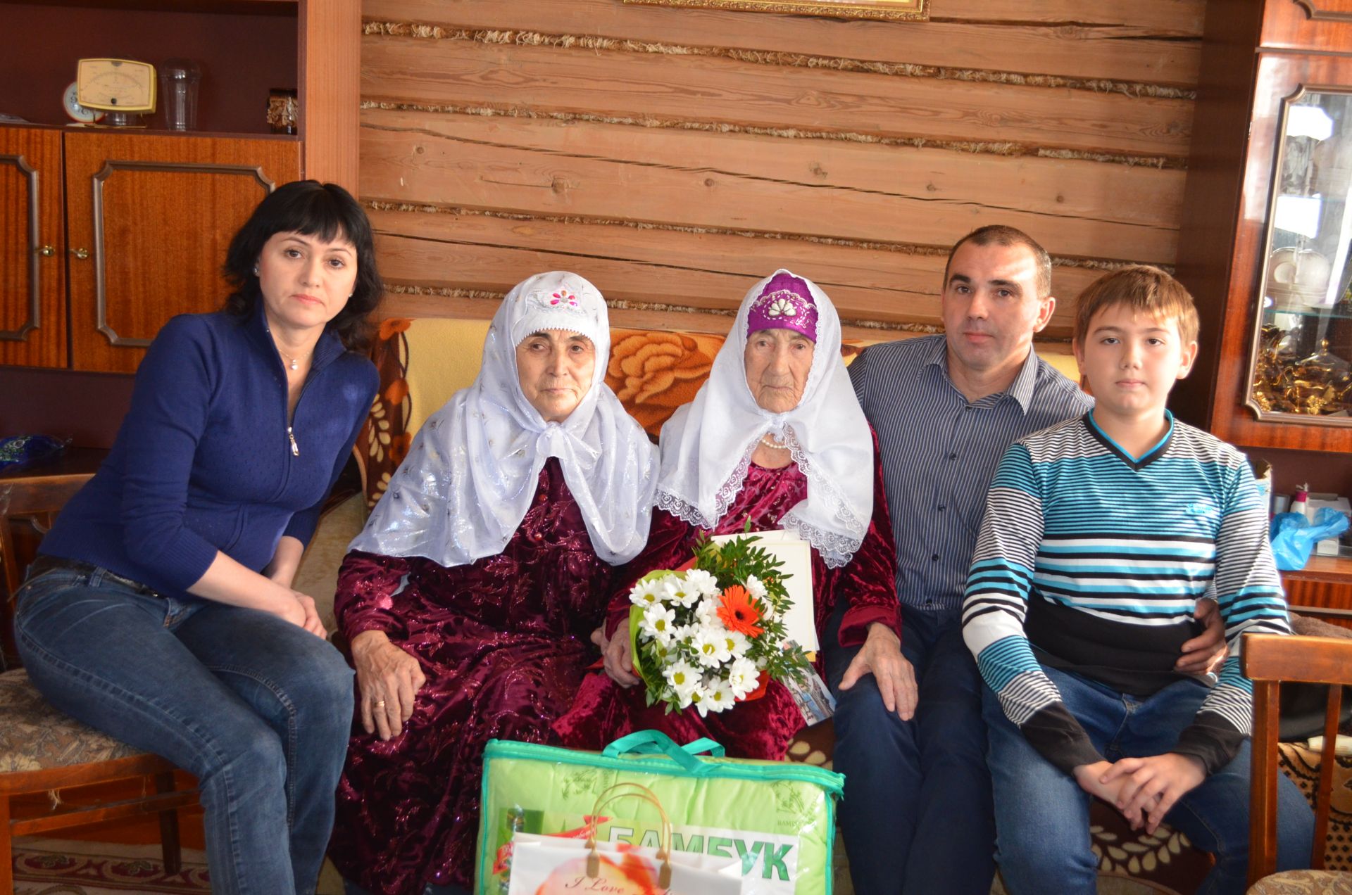 Бер гасырлык гомер юлы узган әбигә Ил башлыгының Котлау хаты, Татарстан Республикасы Президентының Котлау открыткасы, район башлыгының Котлау открыткасы, бүләге, чәчәк бәйләмнәре тапшырылды. Район башкарма комитеты җитәкчесе урынбасары Луиза Сафина, Сатмыш авыл җирлеге башлыгы Равилә Сибгатова иң изге теләкләрен юллап, тагын да озын гомерләр теләделәр.