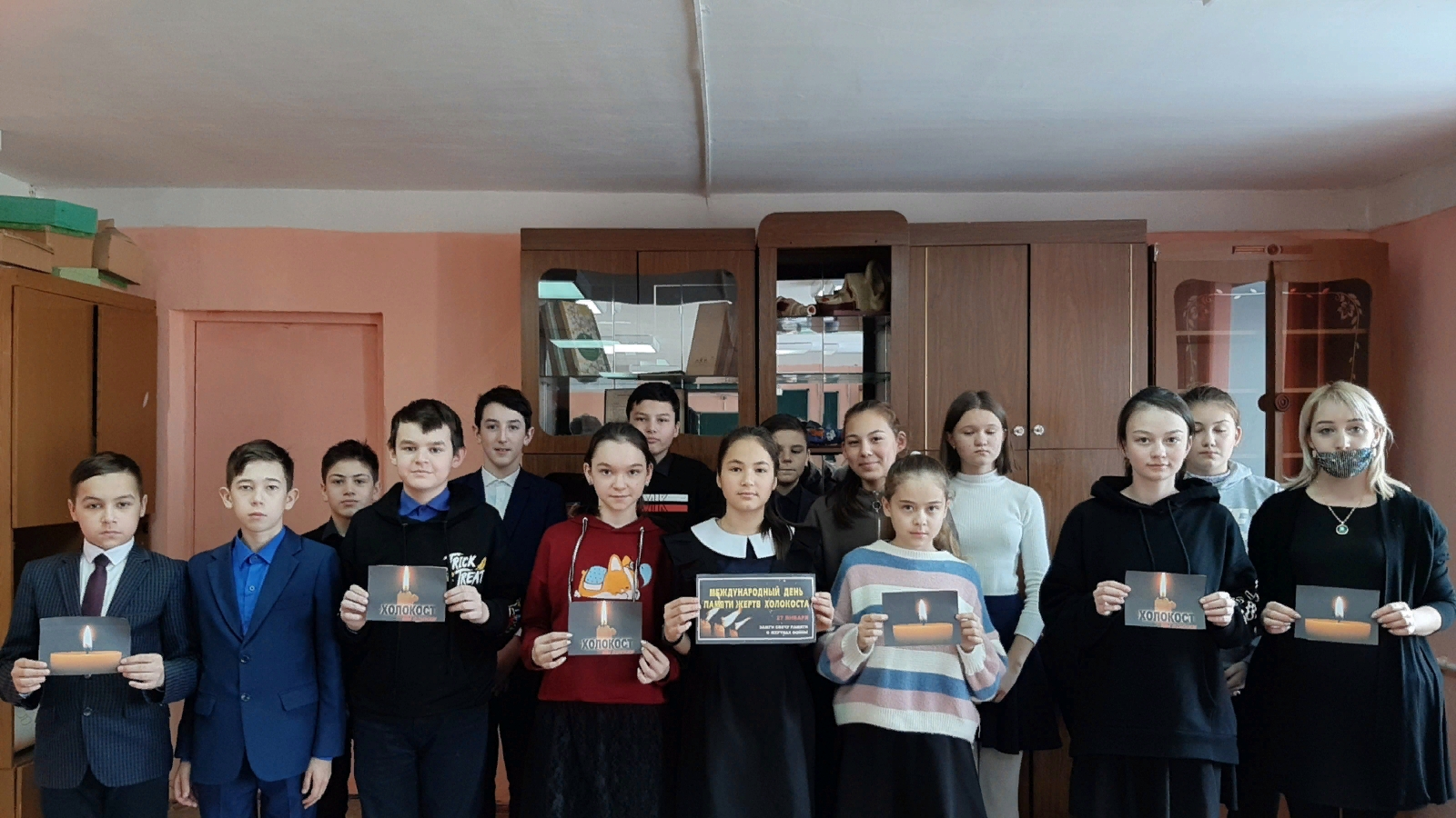 Халыкара Холокост корбаннарын искә алу көне -27 гыйнварда билгеләп үтелә .Бүген дә бу истәлекле көнне «Форпост» үзәге Сарман гимназиясенең 7 «Б» сыйныф укучылары белән берлектә Холокост корбаннарын искә алды. . Әлеге датаның нигезе итеп совет гаскәрләре тарафыннан Сугыш елларында Польша территориясендә урнашкан Освенцимны азат итү көне алына. Кызганыч статистика күрсәткәнчә, үз гамәлдә булган чорда Освенцим миллион ярымнан да ким булмаган гаепсез кешеләрне, шул исәптән хатын-кызлар һәм кечкенә балаларны һәлак иткән. . Кайгылы бәйрәм көне Холокост корбаннары турында онытырга мөмкинлек бирми һәм бөтен дөнья гражданнарына аларны искә алу мөмкинлеге бирә.
