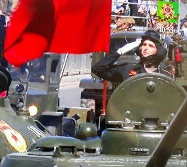 9 майда Казанда узган парадта Апас егете капитан Суслин Ильдар «Т-34» танк командиры булып катнашты.