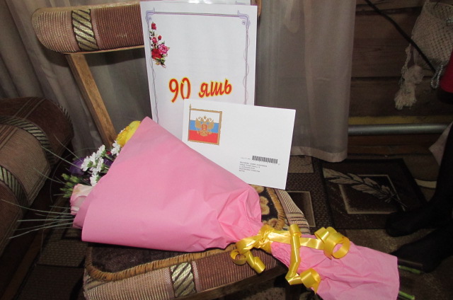 Бу уңайдан аны район советы рәисе урынбасары Гөлнара Галәүтдинова һәм авыл җирлеге рәисе урынбасары Резеда Маликова өенә барып котладылар. Гөлнара Реваль кызы район башлыгы Габделәхәт Гыйлемхан улы Хәкимов исеменнән котлап, “Биредә бик матур шигъри юллар да бар әле”, – дигәч, укып күрсәтүен сорады. Котлауны күзләре яшьләнеп тыңлады, ә инде Россия президенты исеменнән килгән котлауны укыганда еламсырап ук җибәрде. “Бик тирән эчтәлекле котлаулар, шундый зур җитәкчеләрнең тәбрикләү сүзләрен ишетү нинди зур бәхет”, – дип кабатлады.