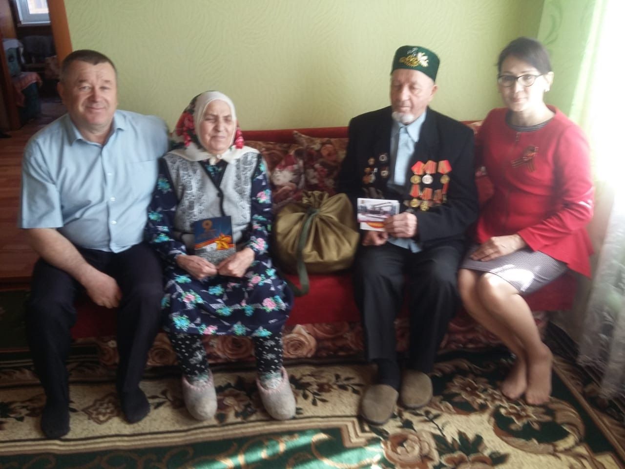 Күчтәнәч пакетлары сугыш чорындагы кебек, бабайлар телендә әйткәндә меш-мешок рәвешендә тектерелгән. Чүрибураш авылында яшәүче Гаделҗан бабай Габидуллин район башлыгы тарафыннан шундый кадер хөрмәткә бик шатланды. - Сугыш вакытында солдатның меш-мешогында калай кружка, кашык һәм котелок кына шылтырап йөри иде. Бүген район башлыгы китергән мешокны күтәргесез, нәрсә генә юк монда. Шулай зурлаганы өчен сәламәтлек, эшендә уңышлар, тыныч тормыш телим. Ил-көннәребез тыныч булсын, балалар шатланып яшәсен, киләсе Җиңү бәйрәмнәрен дә бергә-бергә күрергә язсын, - дип озатып калды Гаделҗан бабай белән 65 ел парлы гомер кичерүче тормыш иптәше Диләфрүз әби. Бүләк алучы барлык ветераннардан да шундый ук изге теләкләр, олы рәхмәт сүзләре яңгырады.