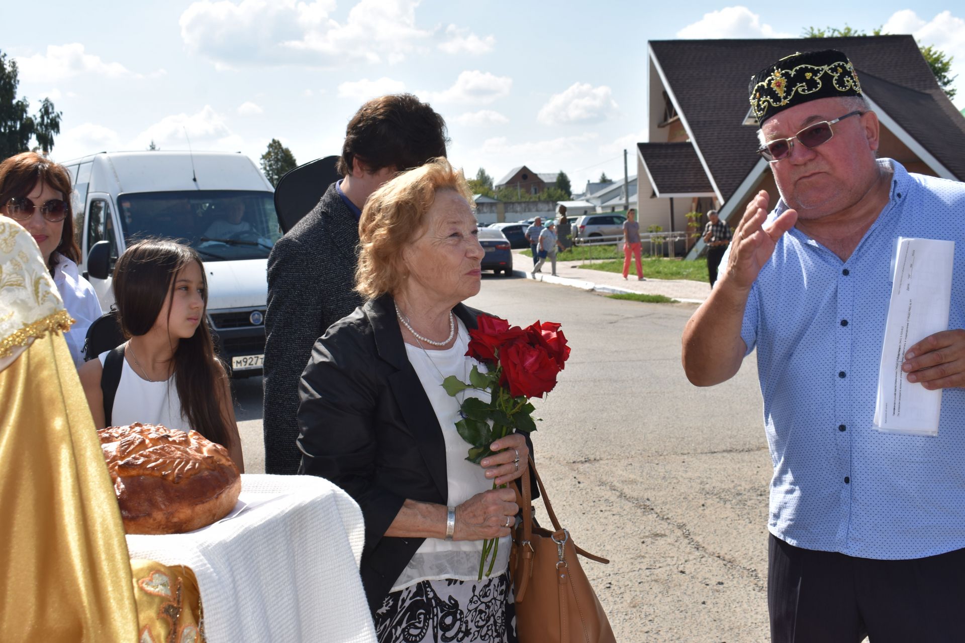 Район башлыгы Рәшид Заһидуллин бирегә килгән кунакларны җылы сәламләп, олы хөрмәтен белдереп, очрашу истәлеге итеп, Апас тарихы һәм бүгенге тормышы тасвирланган китап бүләк итте һәм Апас символикасы төшерелгән истәлекле кепкалар, бүләкләр тапшырды.